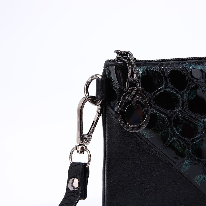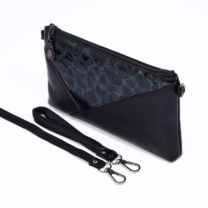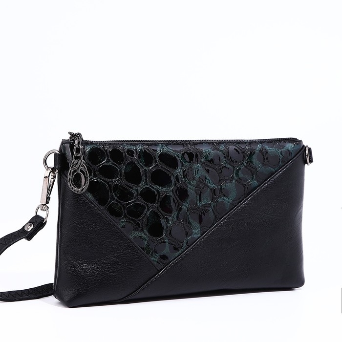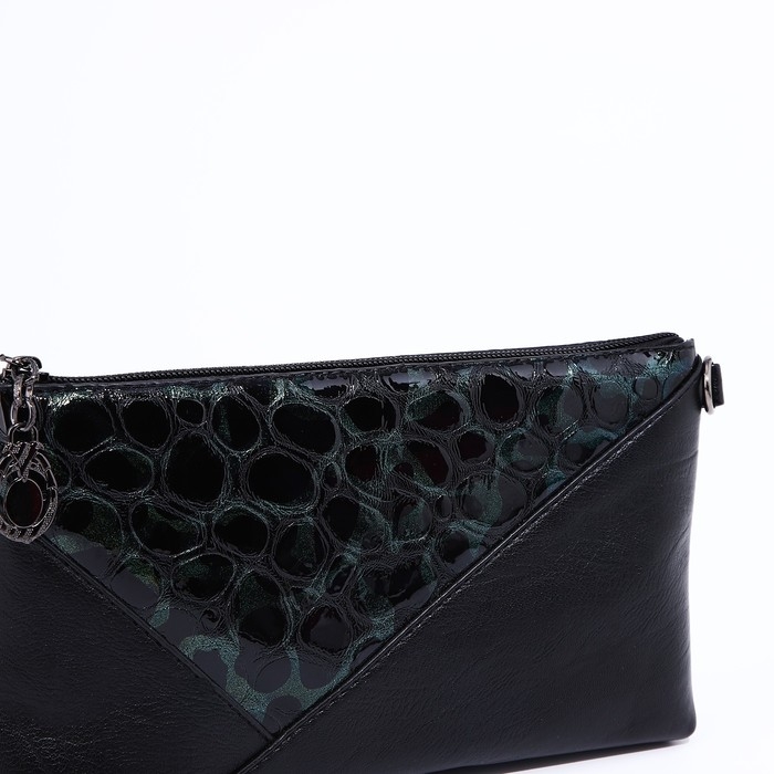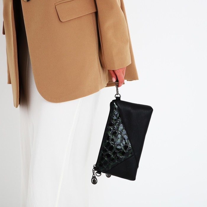 Сумка-клатч на молнии, цвет чёрный/зелёный