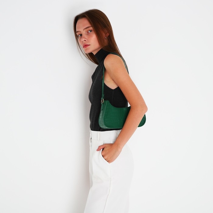 Сумка-багет на молнии, цвет зелёный