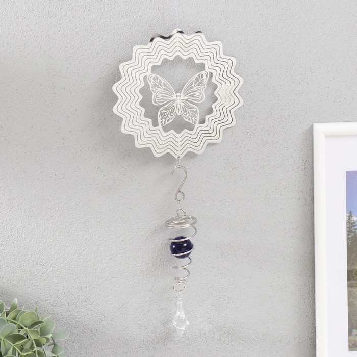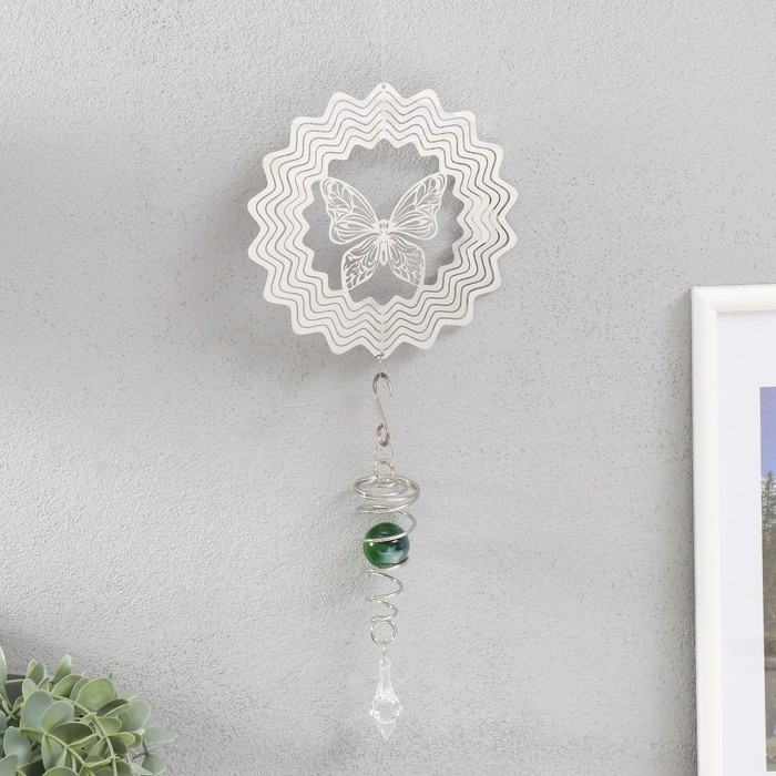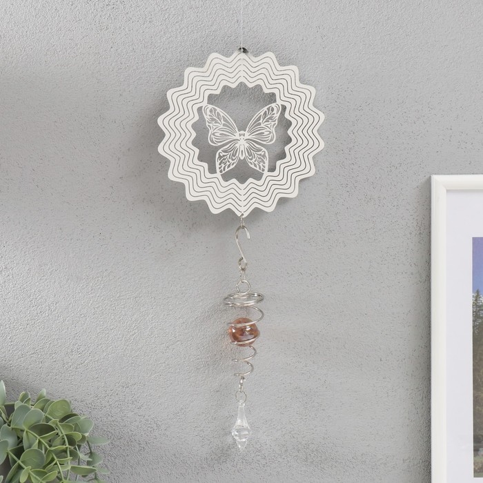 Ветряной колокольчик металл 3D "Ажурная бабочка" с бусиной 13,5х13,5х31 см