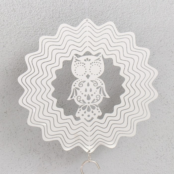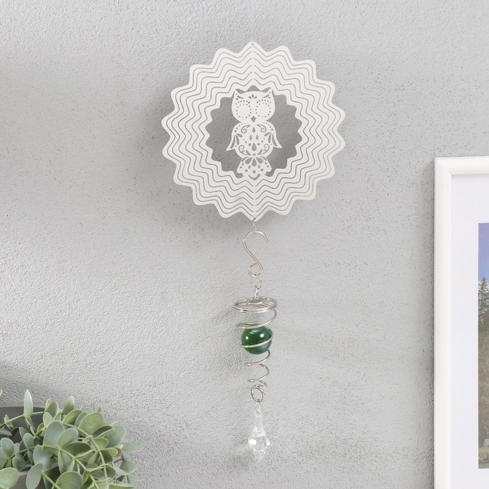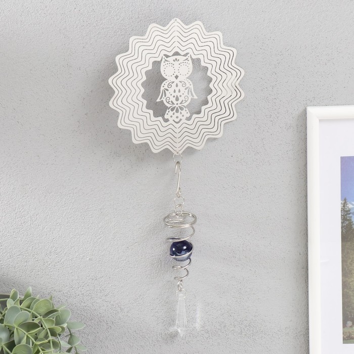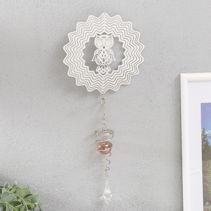 Ветряной колокольчик металл 3D "Ажурный филин" с бусиной 13,5х13,5х31 см