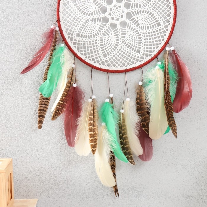 Ловец снов "Кружево Цветок" зелёно-коричневый 24х45 см