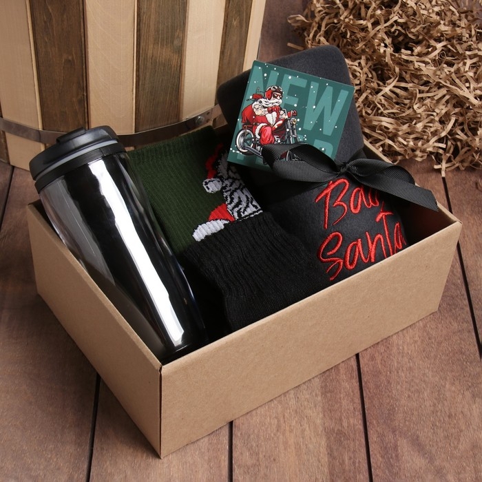 Набор подарочный "Bad Santa" плед, носки, перчатки, термостакан