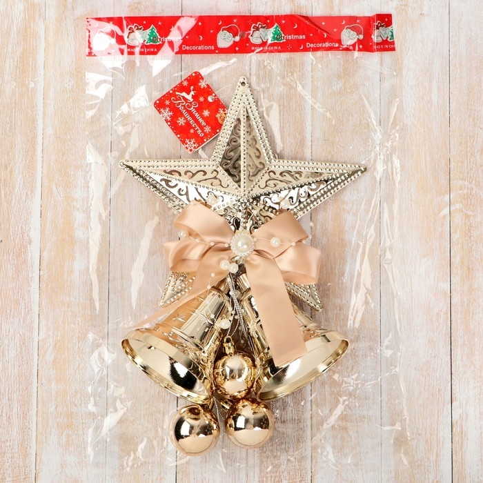 Украшение новогоднее "Уютная сказка" колокольчики звезда бант, 14х39 см, золото