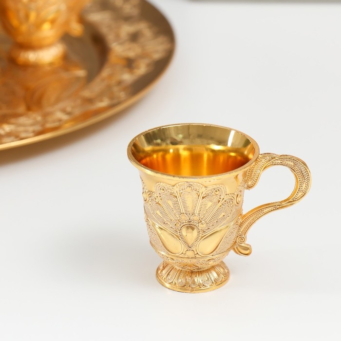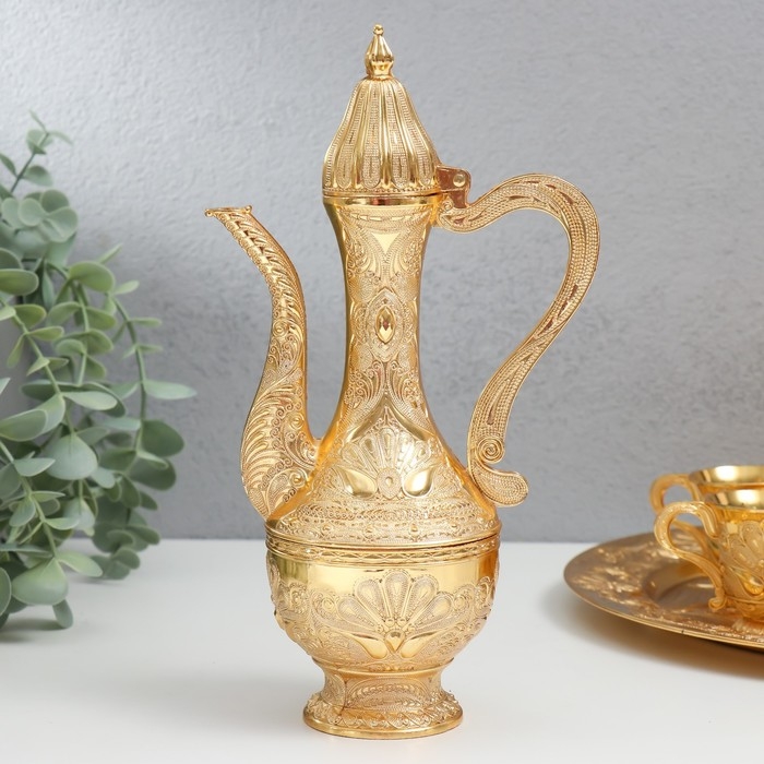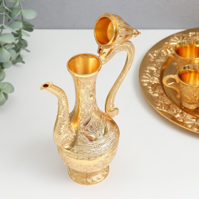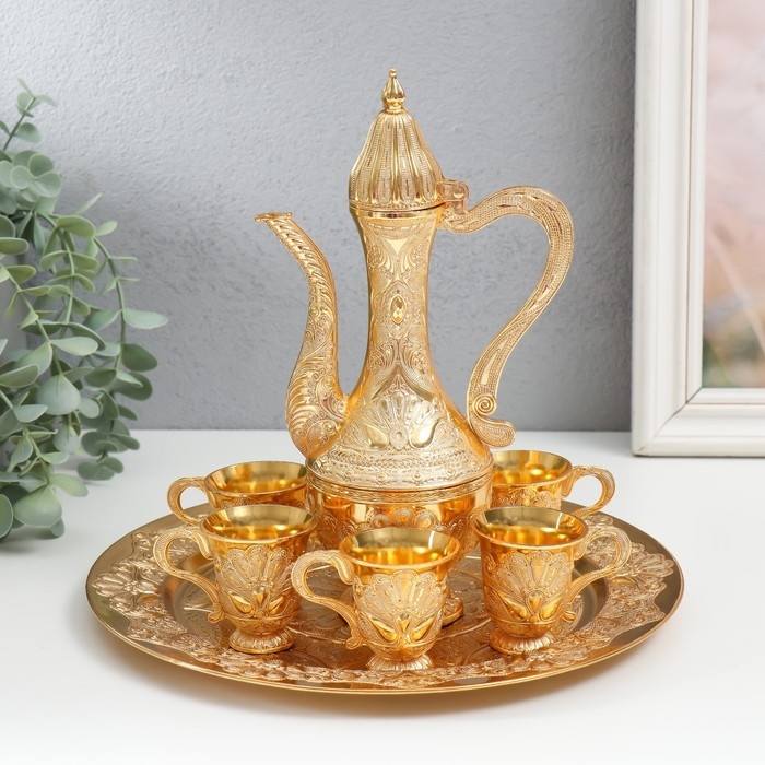 Набор винный кувшин, 6 бокалов и поднос "Стамбул. Медальон и узоры" золото