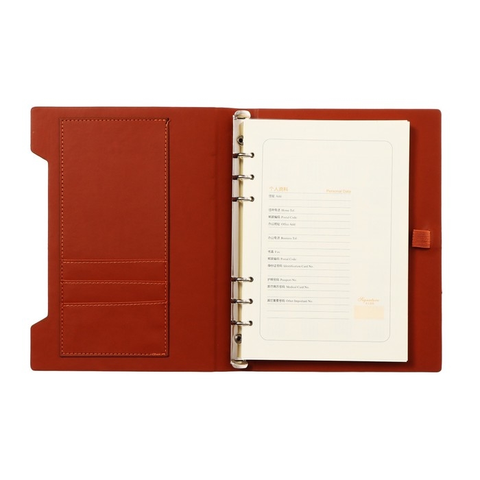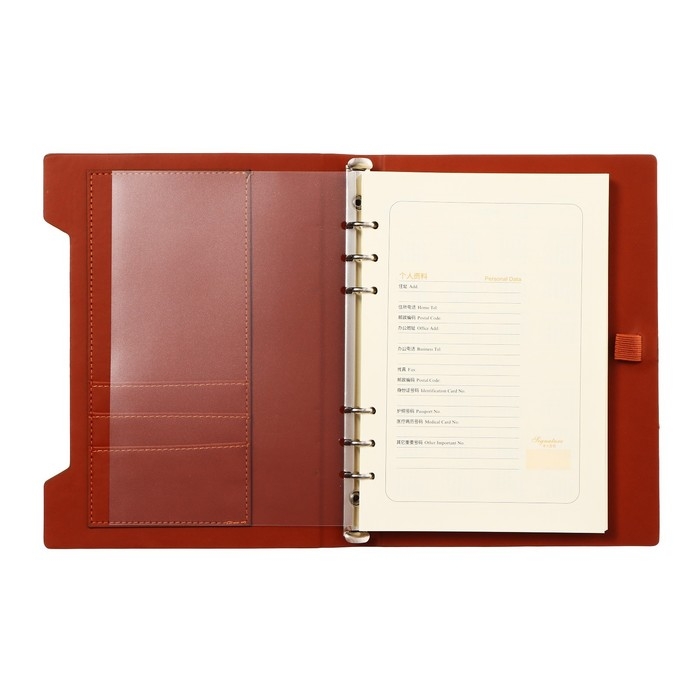 Органайзер на кольцах, формат А5, 90 листов, линия, обложка кожзам МИКС, с резинкой для ручки