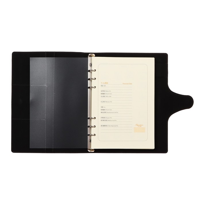 Органайзер на кольцах, формат А5, 90 листов, линия, с хлястиком, обложка кожзам МИКС