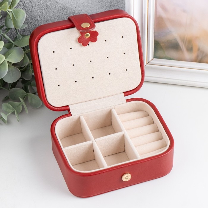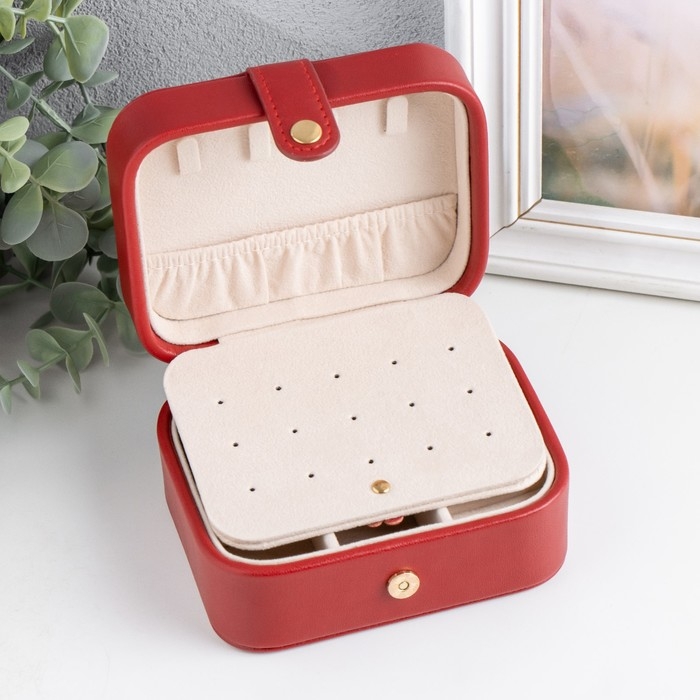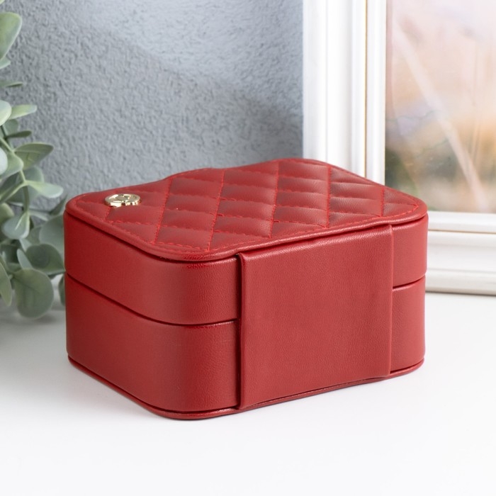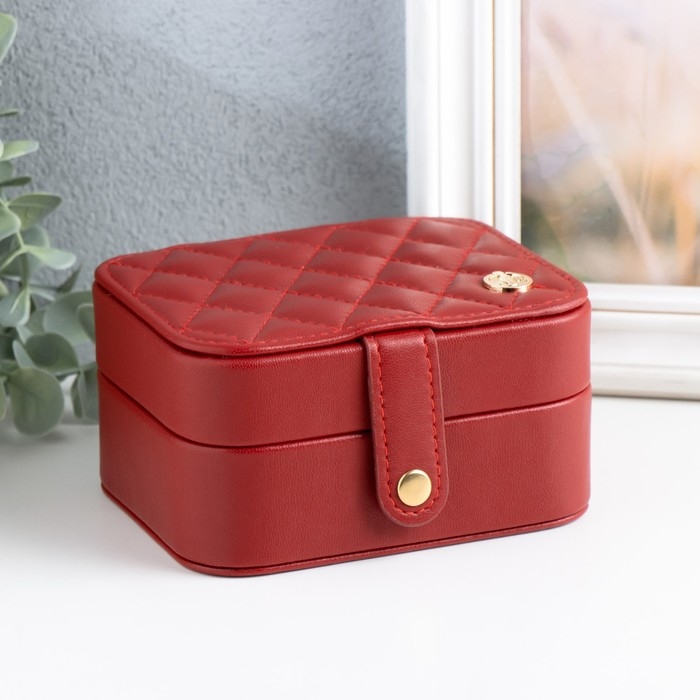Шкатулка кожзам для украшений "Стёганая матовая" бордовая 12х10х6,3 см