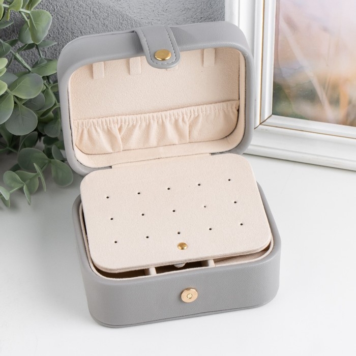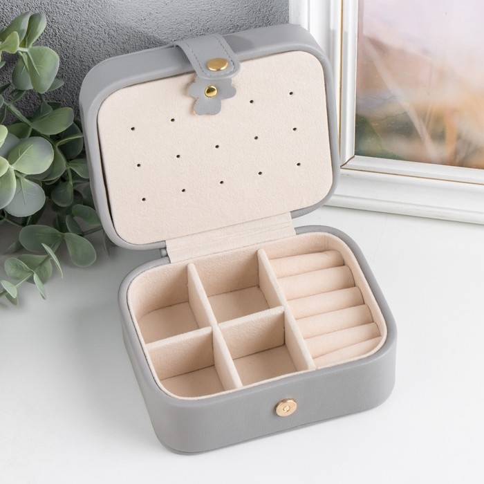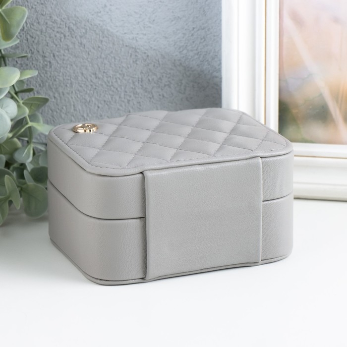 Шкатулка кожзам для украшений "Стёганая матовая" серая 12х10х6,3 см