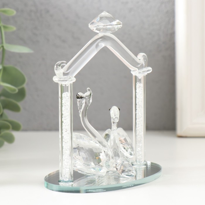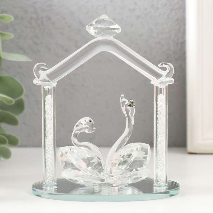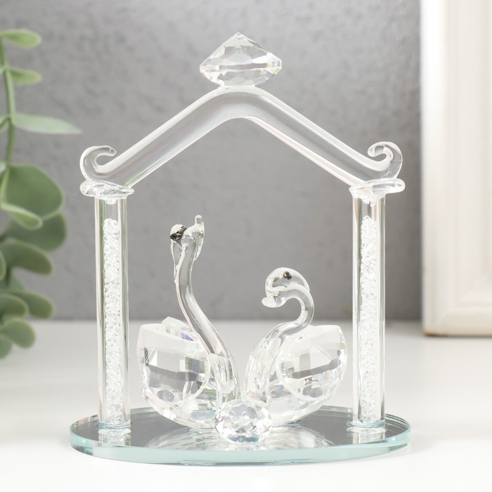 Сувенир стекло "Два лебедя под крышей" прозрачный 5,2х8,2х10,5 см