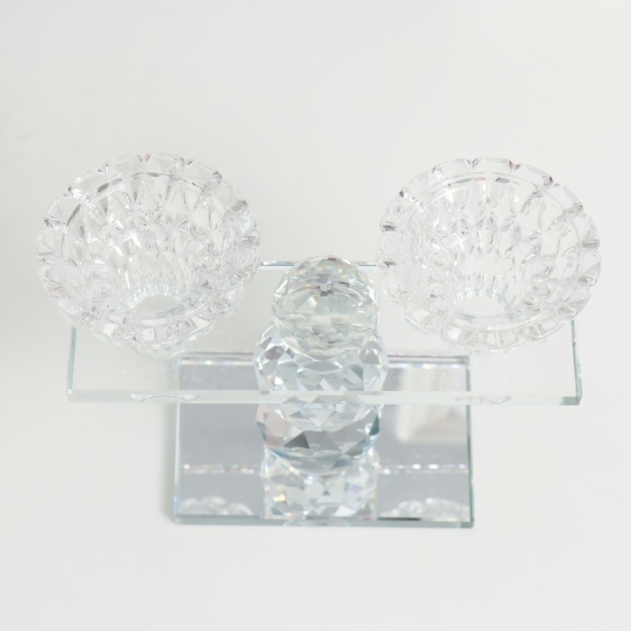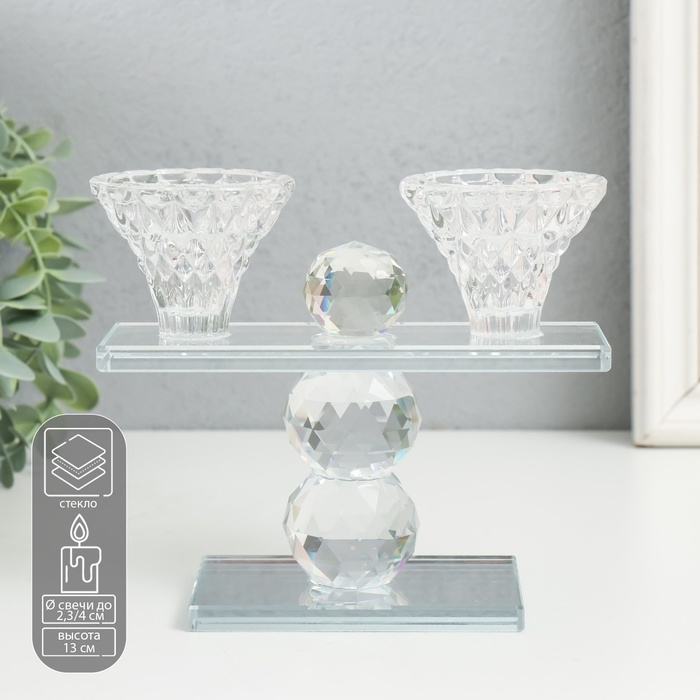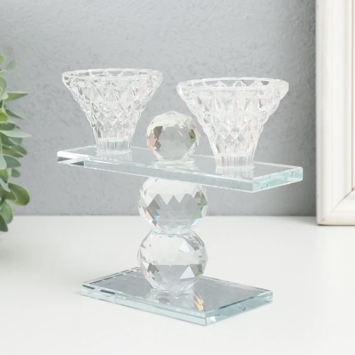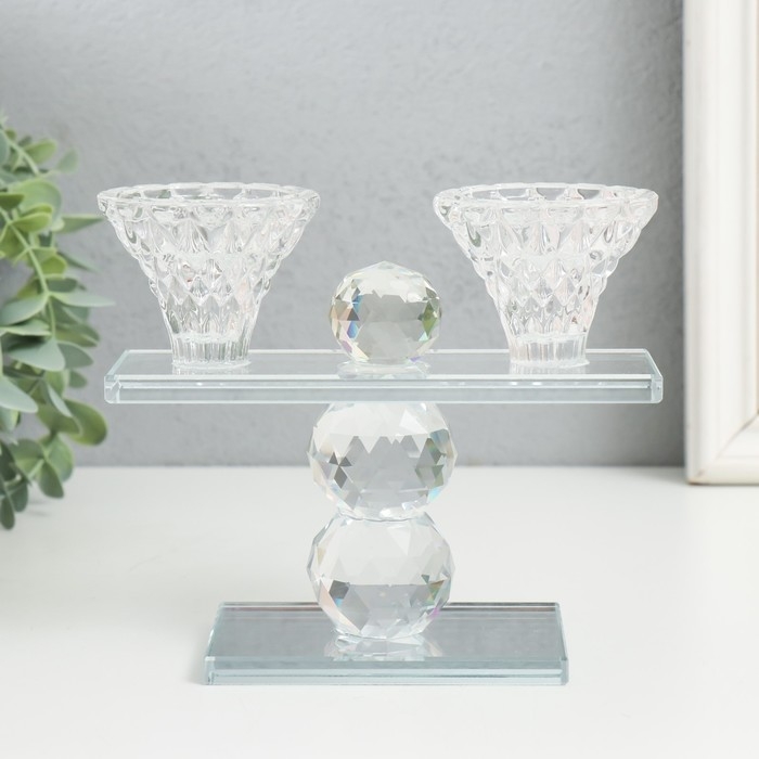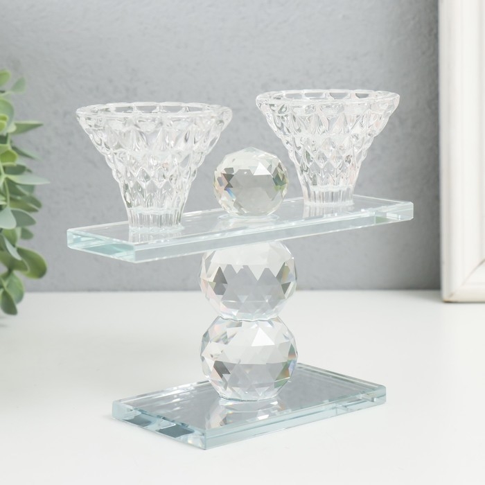 Подсвечник стекло на 2 свечи "Две чаши на пъедестале" прозрачный d=2,3 и 4 см 5,5х15х13 см 970282