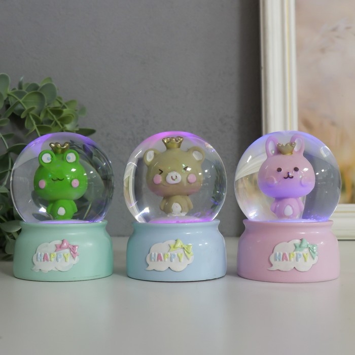 Сувенир полистоун водяной шар свет "Счастливая зверюшка" МИКС 6х6х8,5 см