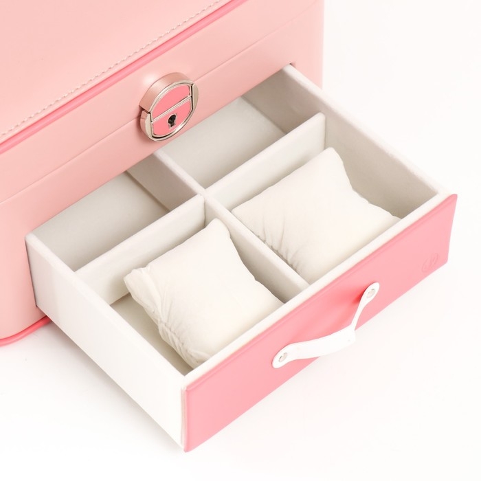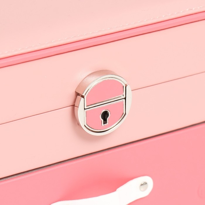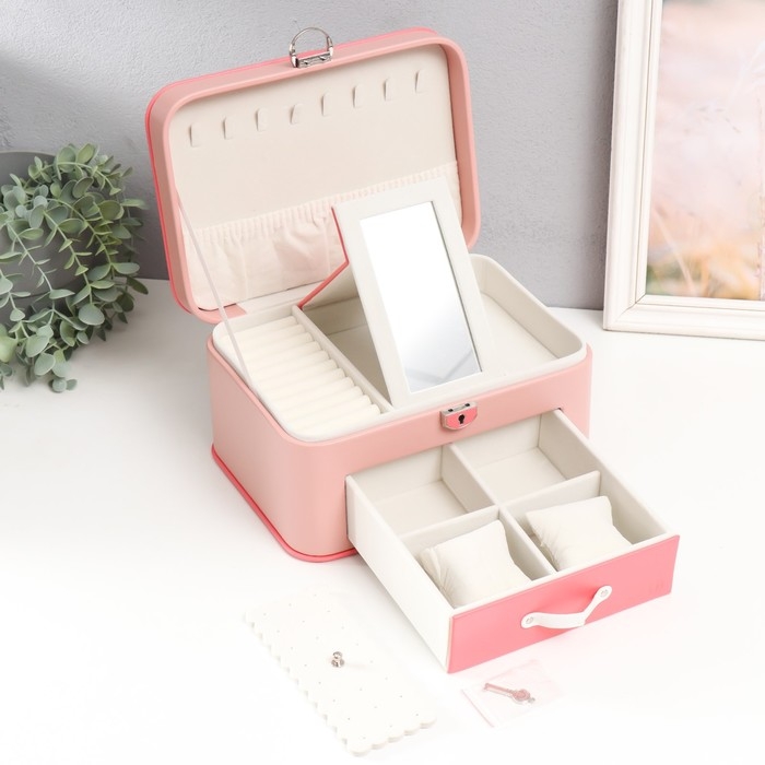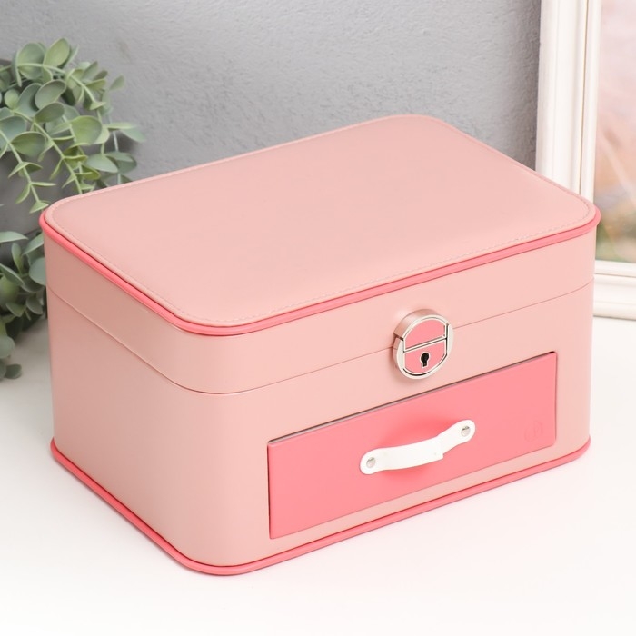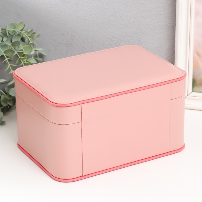 Шкатулка кожзам для украшений "Шейла" розовая с коралловым 25,5х18,5х14 см