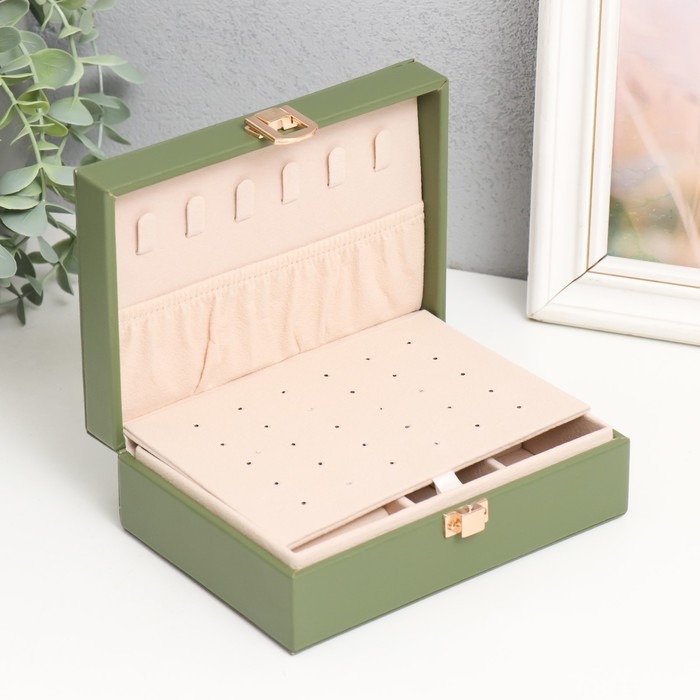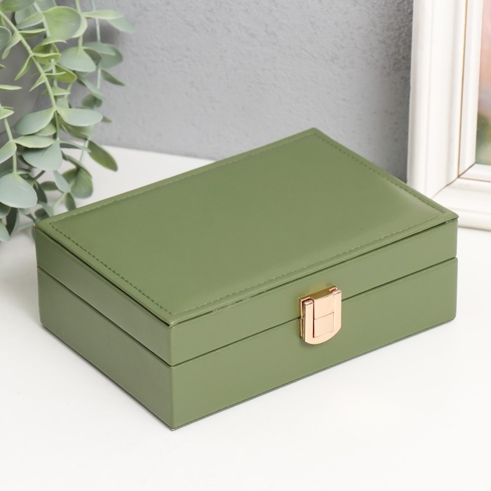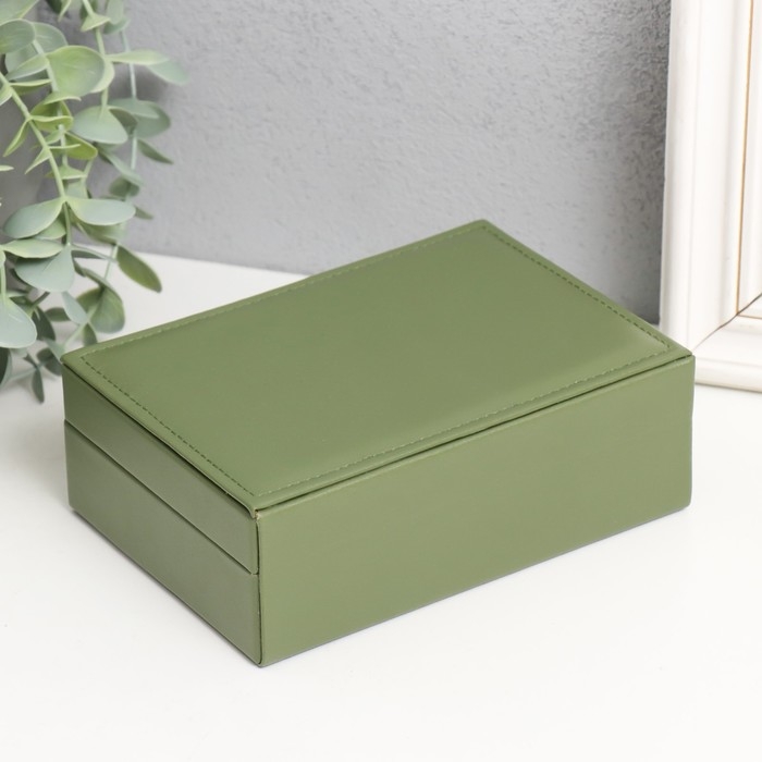 Шкатулка кожзам для украшений "Матовая гладь. Прямоугольная" зелёная 16х11,5х5,5 см