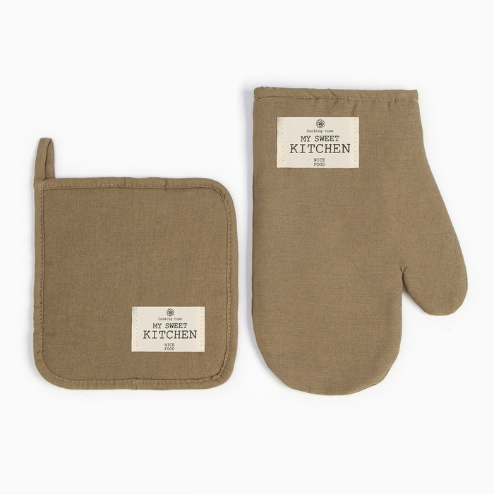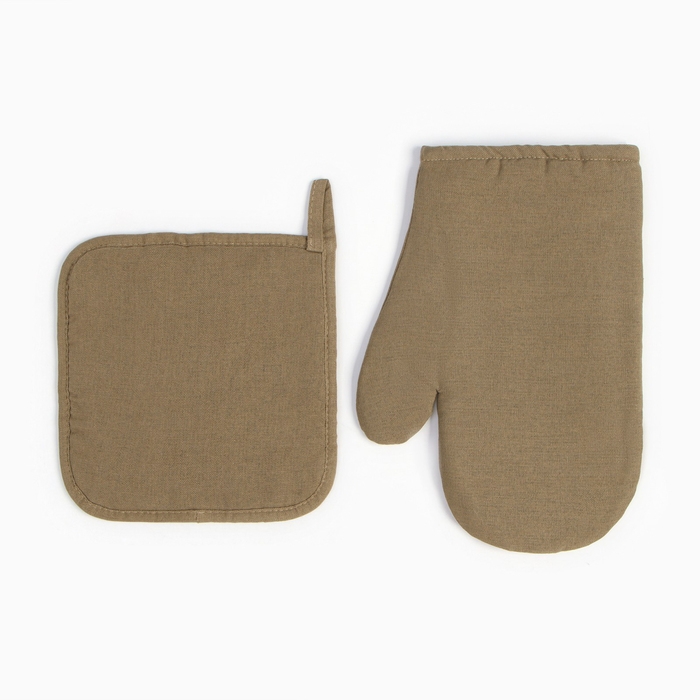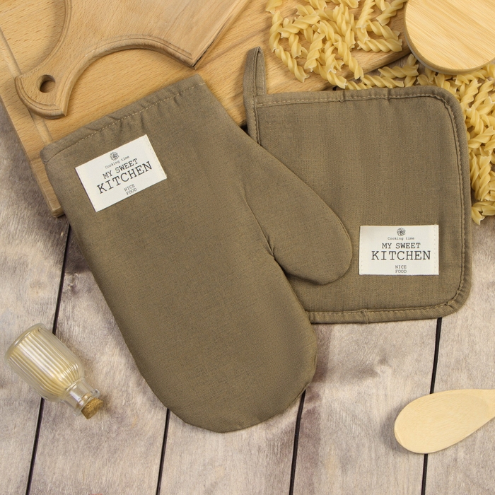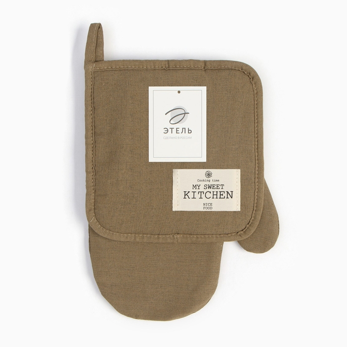 Набор кух. Этель ECO, цв. оливковый: варежка 20х28 см, прихватка 19х19 см, 70% хл, 30% лён,