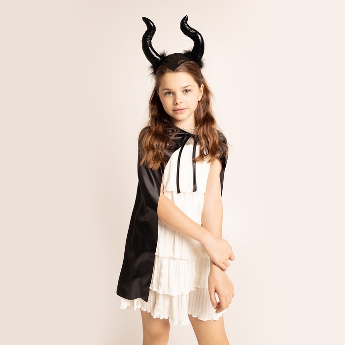 С набором «Королева тьмы» ваша малышка станет настоящей звездой на детской вечеринке и поразит всех гостей! Набор эффектно дополнит образ, ведь в комплекте есть плащ и ободок. Создавайте яркие эмоции и воспоминания на целый год вперёд себе и ребёнку!