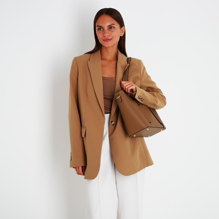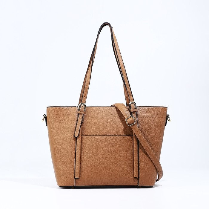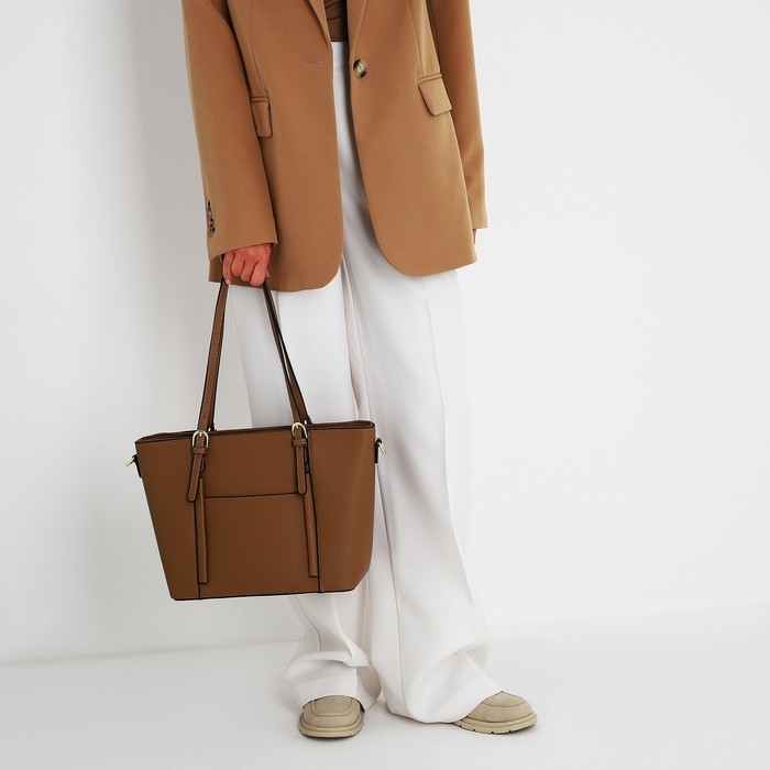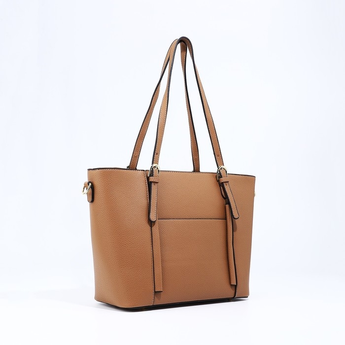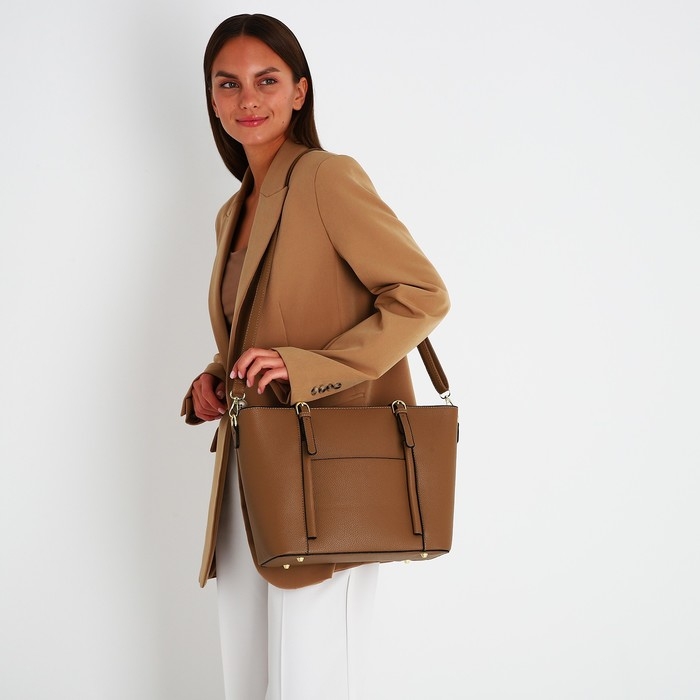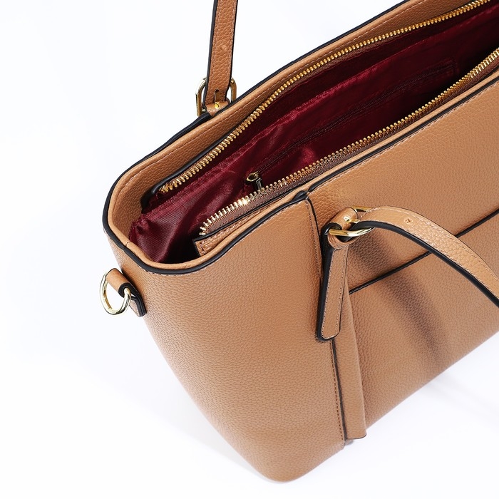Сумка-шопер женская на молнии, цвет светло-коричневый
