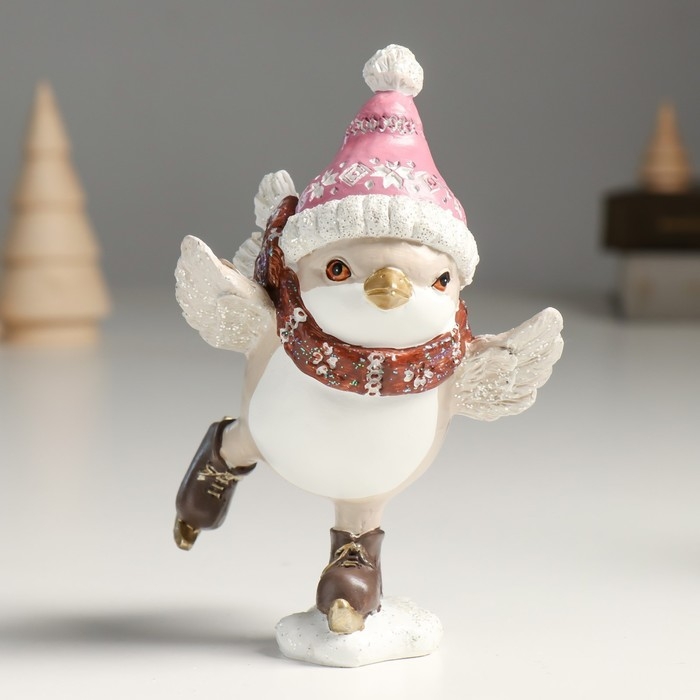 Сувенир полистоун "Птенчик в шапке и шарфике, на коньках" МИКС 9,5х7,5х15 см