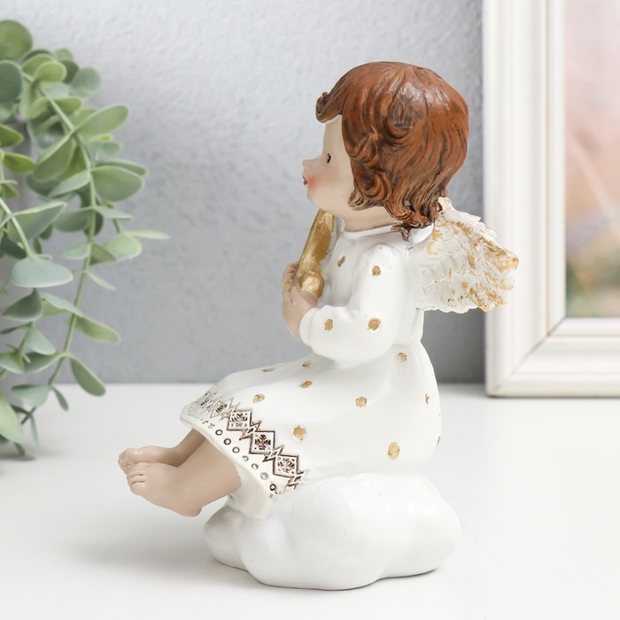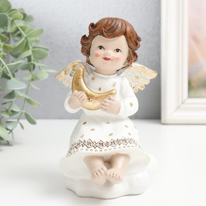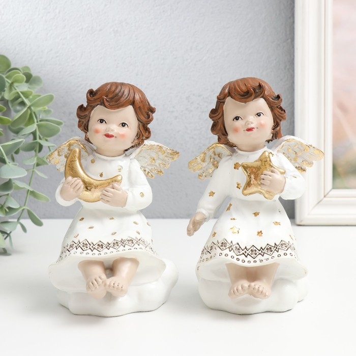 Сувенир полистоун "Ангелочек в платье с узорами, держит месяц/звезду" МИКС 9,5х9,5х15 см