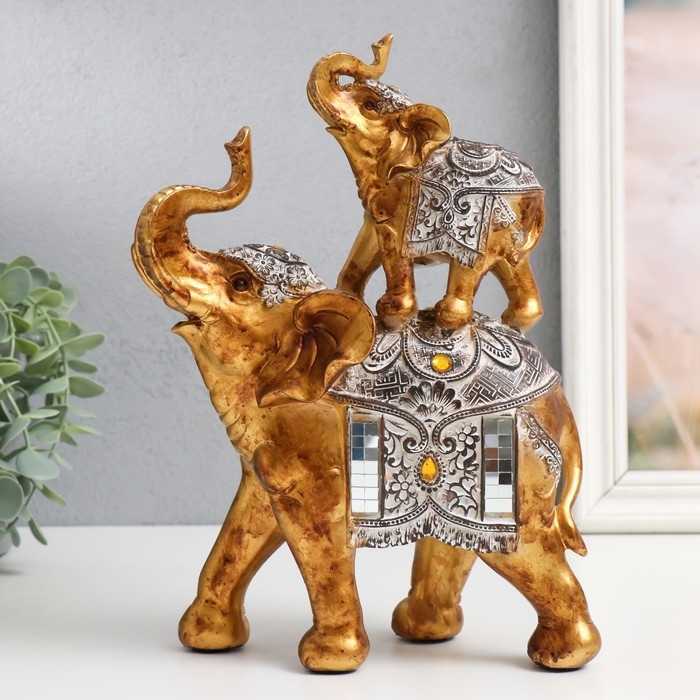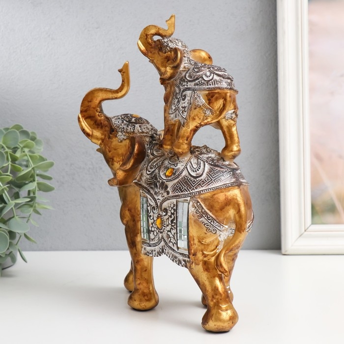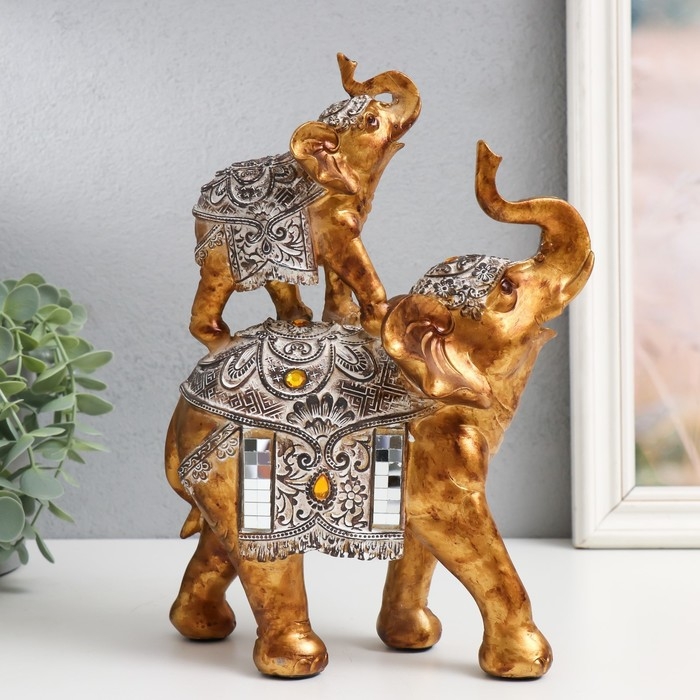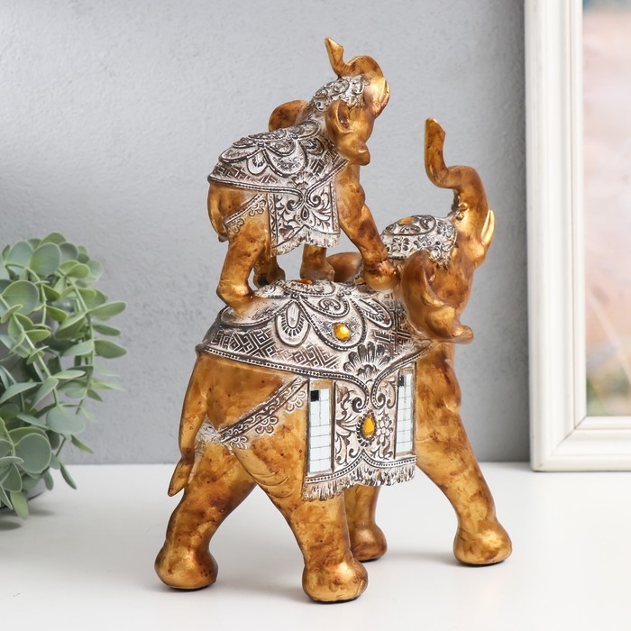 Сувенир полистоун "Слон со слонёнком на спине - попона с узорами и янтарём" 18,5х9х25,5 см