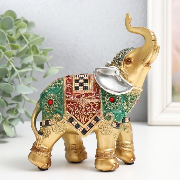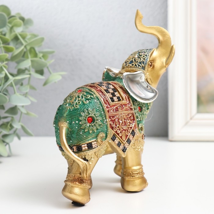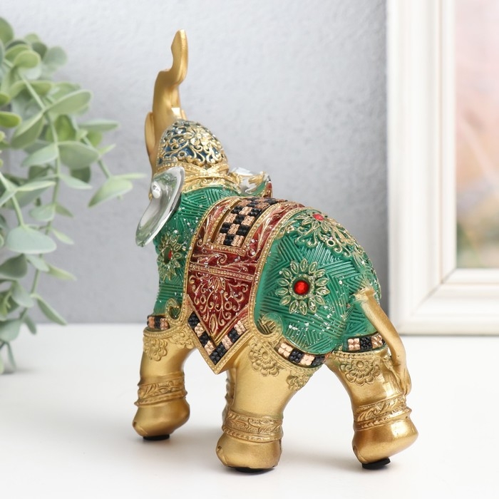 Сувенир полистоун "Слон - попона красно-зелёная с рубинами" 12,5х5,5х15,5 см