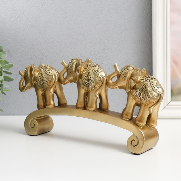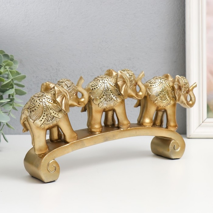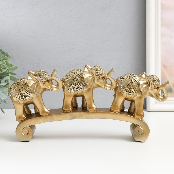Сувенир полистоун "Три золотых слона на дуге - цирковая попона" 15,5х5х28 см