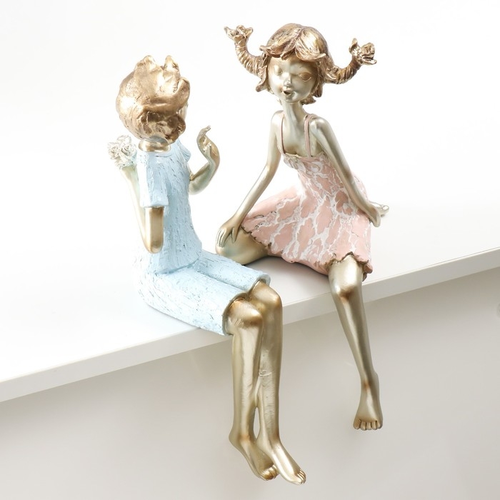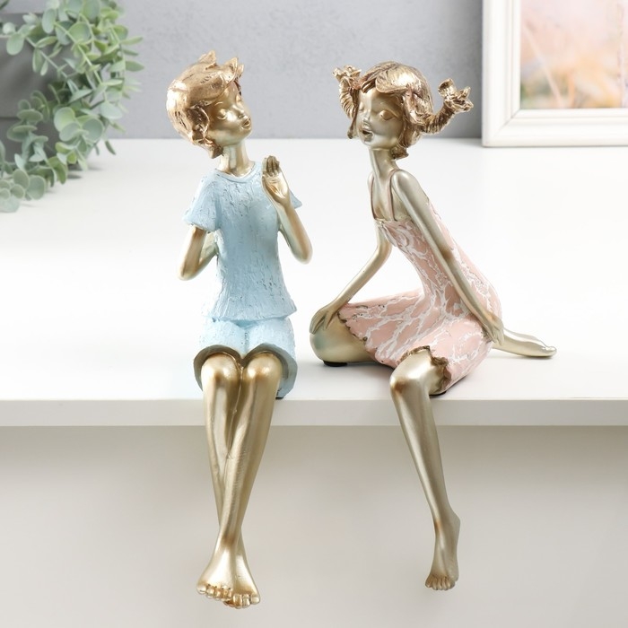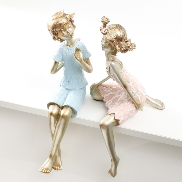 Сувенир полистоун "Дети - Озорники" бело-золотой набор 2 шт 13х15,5х32 9х19х34 см
