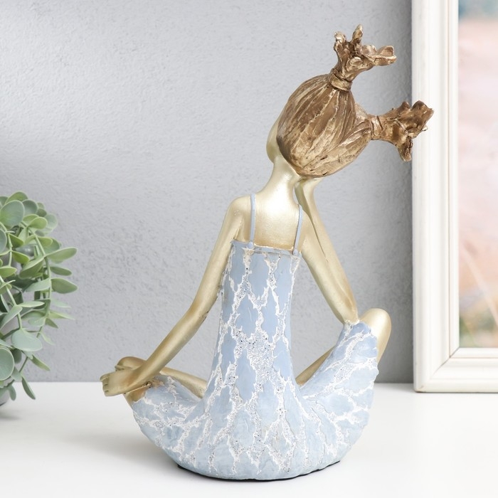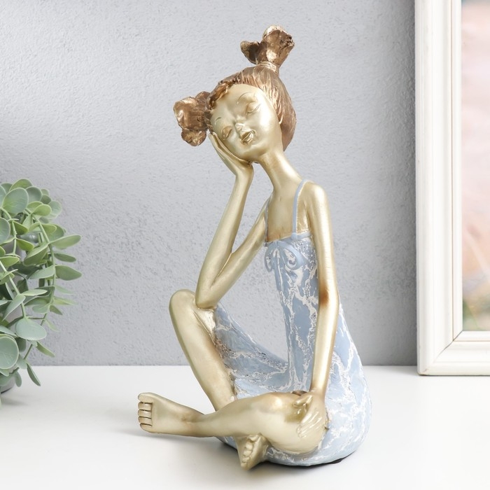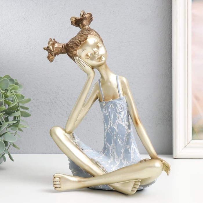 Сувенир полистоун "Малышка с двумя хвостиками" бело-золотой 21х13,5х26 см