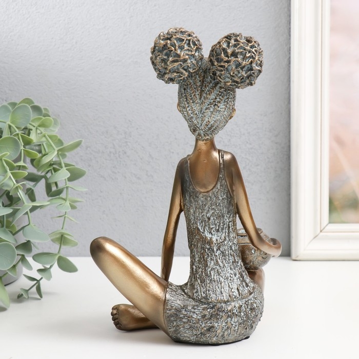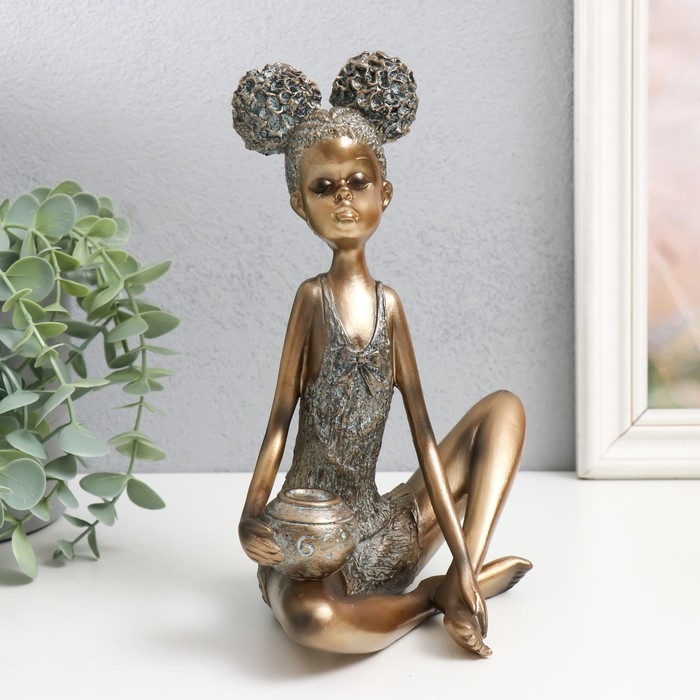 Сувенир полистоун "Девочка с кудрявыми хвостиками, с кувшином" под бронзу 16,5х13,5х21 см