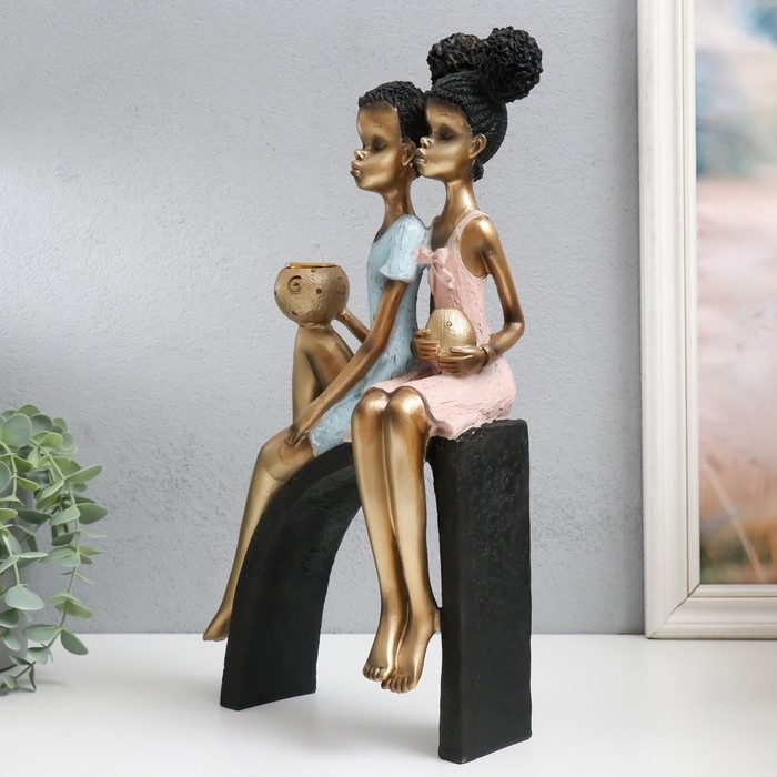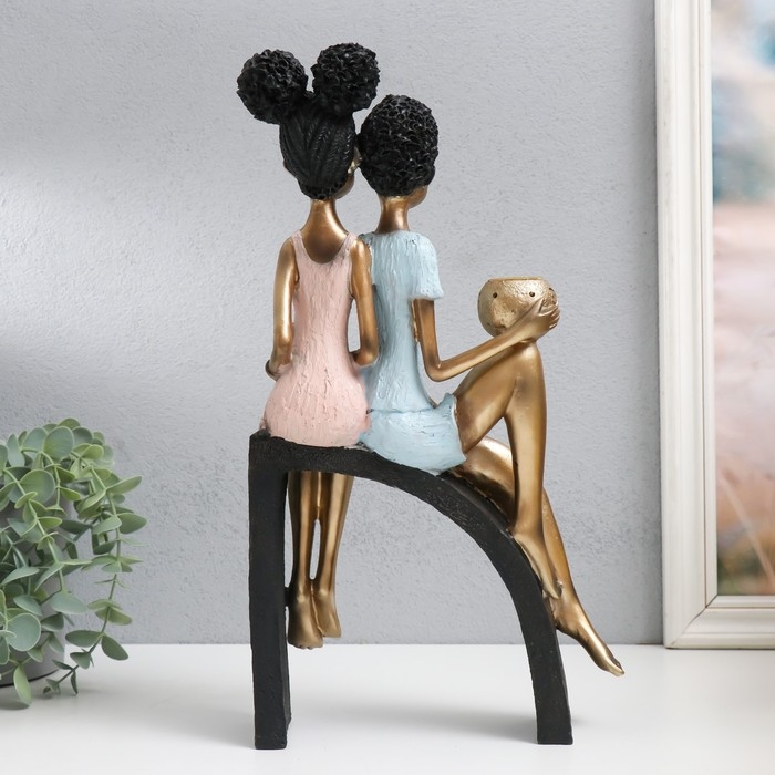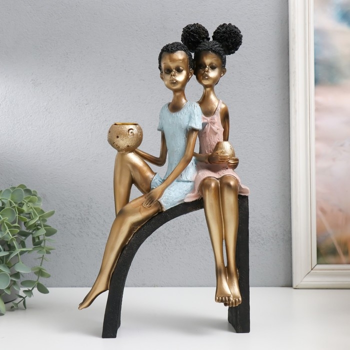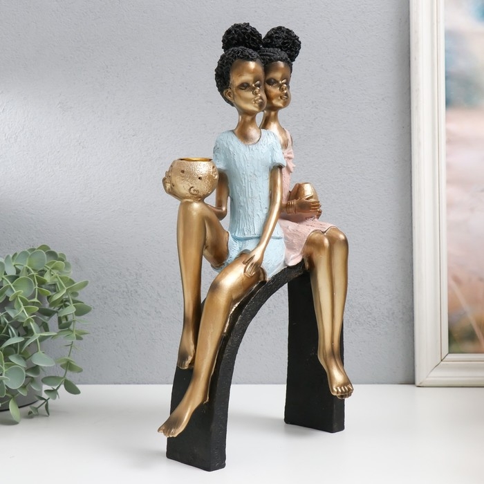 Сувенир полистоун подсвечник "Дети на горке, с кувшинами" бело-золотой 19,5х10х35 см