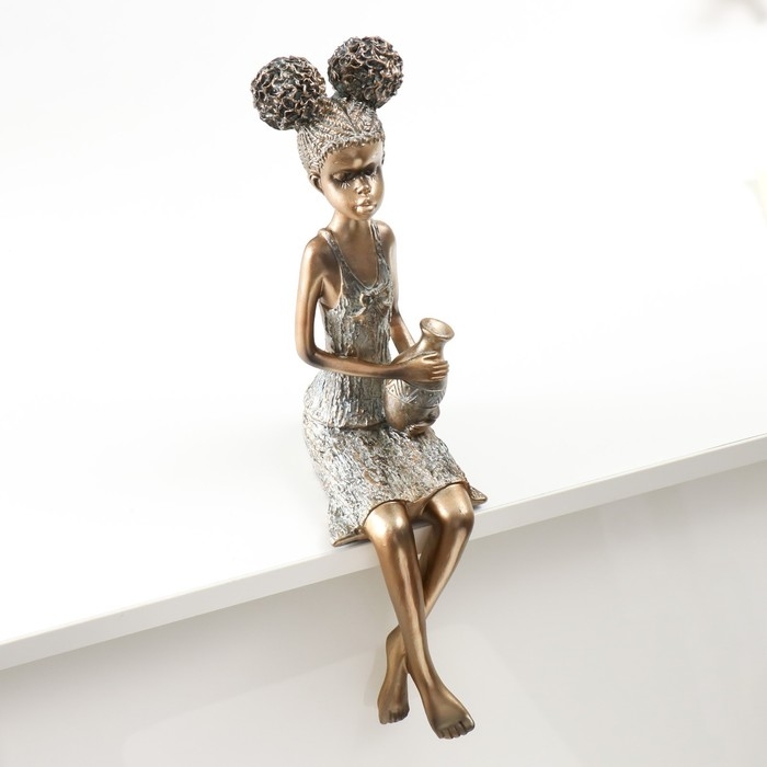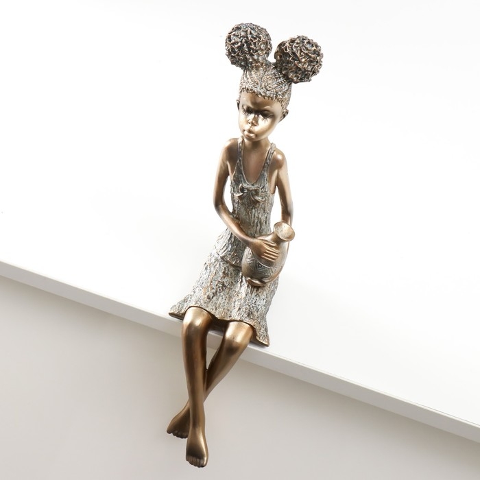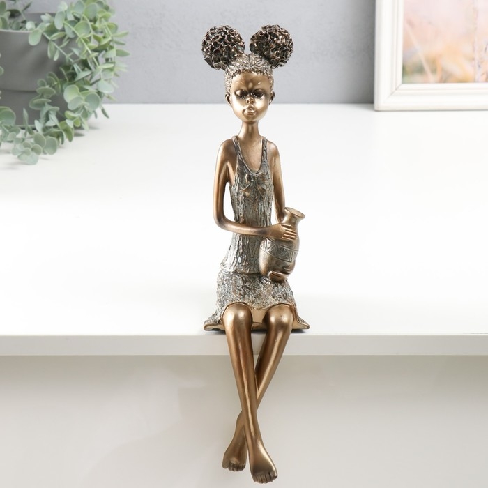Сувенир полистоун "Девочка с кудрявыми хвостиками, с кувшином" под бронзу 14,5х8,5х34,5 см