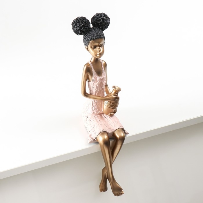Сувенир полистоун "Девочка с кудрявыми хвостиками, с кувшином" бело-золотой 14,5х8,5х34,5 см 95719