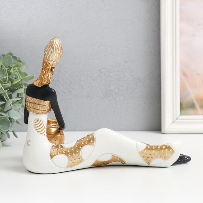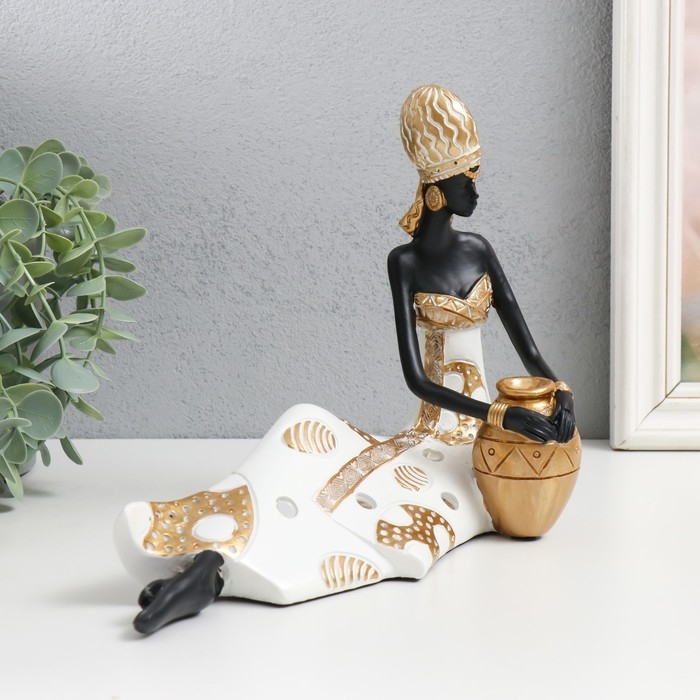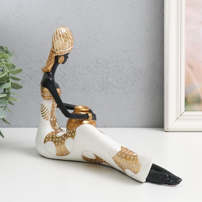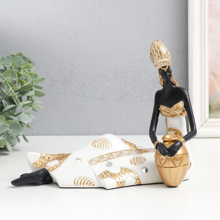 Сувенир полистоун "Африканская красавица с кувшином" бело-золотой 24,5х9,5х19 см