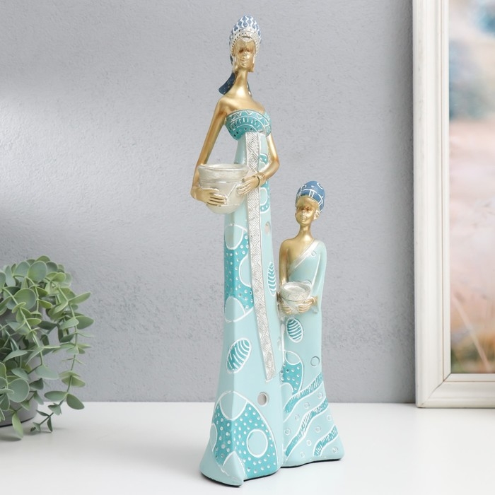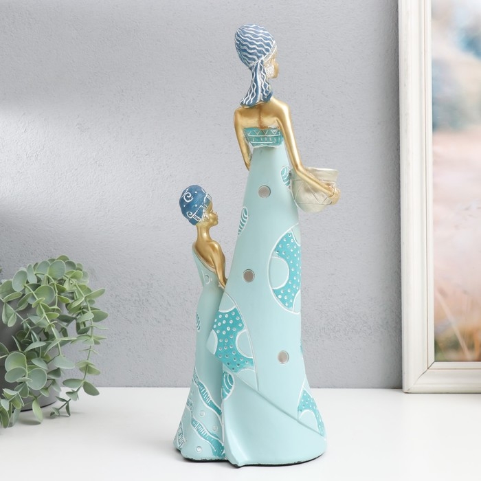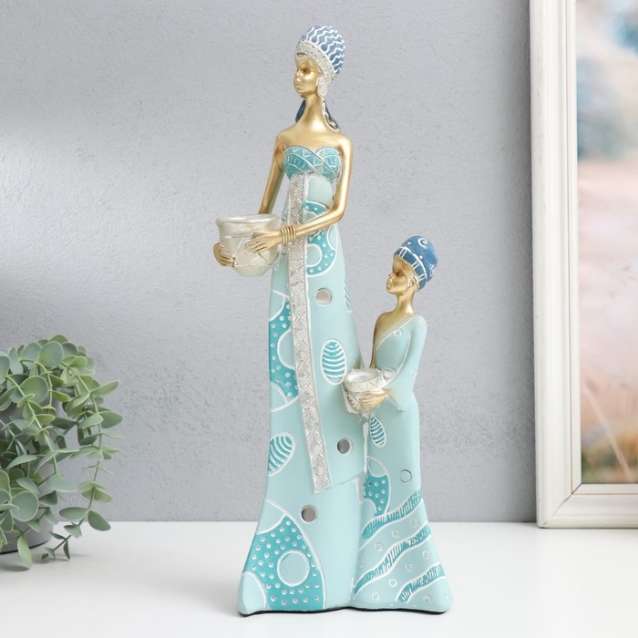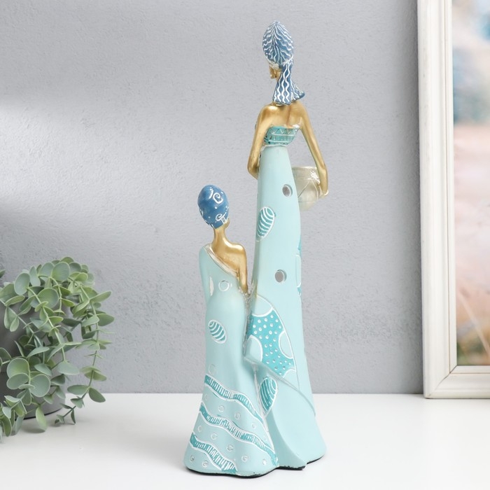 Сувенир полистоун "Африка - Мать и дочь, с глиняной посудой" золото с голубым 15х8,5х36,5 см 95719