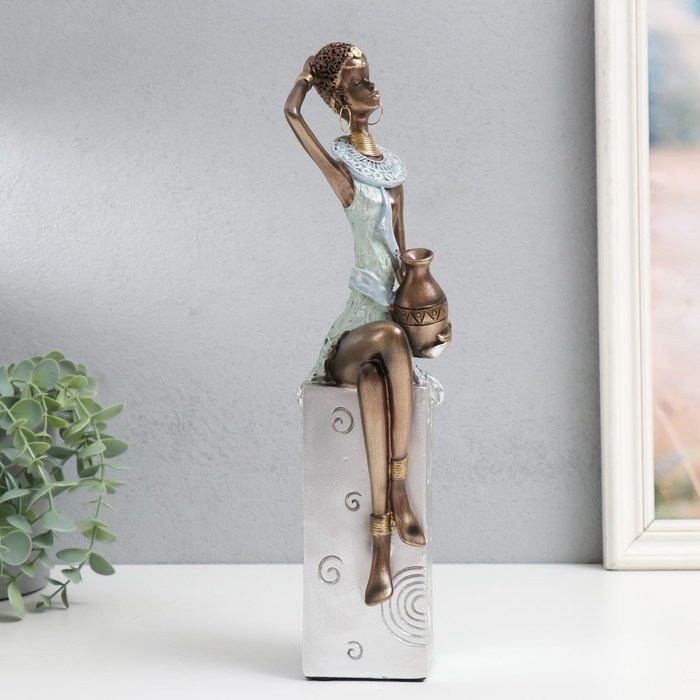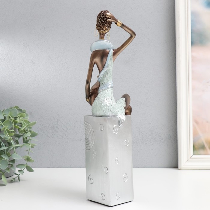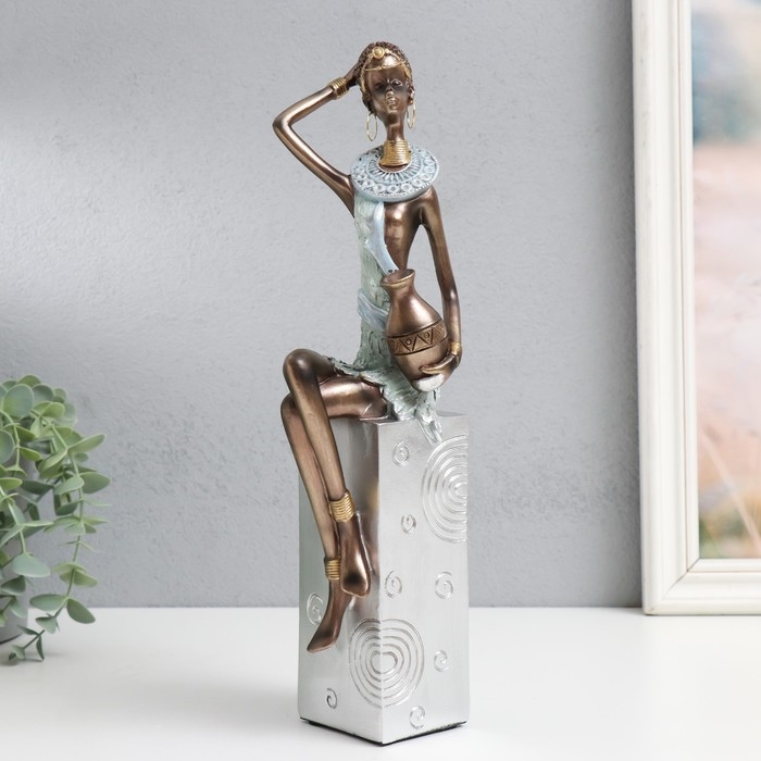Сувенир полистоун "Африканка с кувшином, на подставке" серебро узор - круги 10,5х8х33,5 см