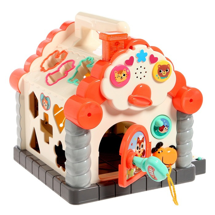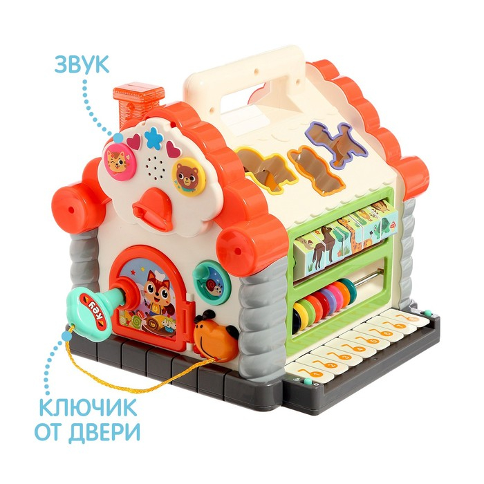 Игрушка развивающая логическая «Домик с ручкой», световые и звуковые эффекты, счёты, пианино, сортер