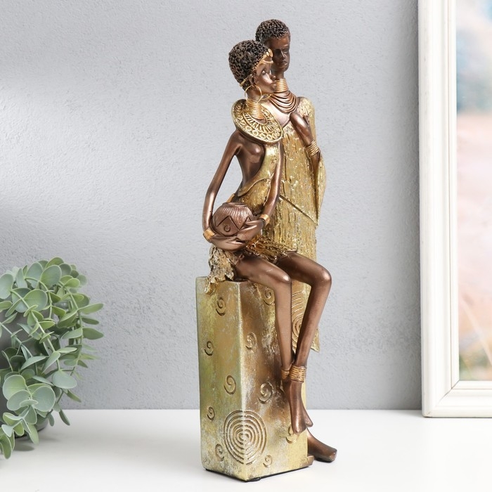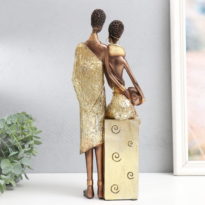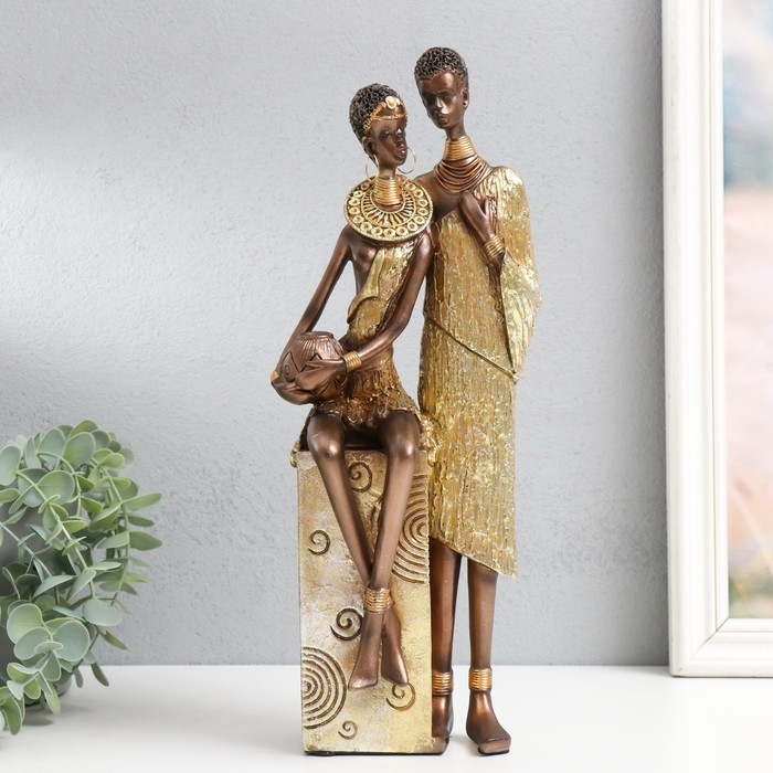 Сувенир полистоун "Африканская пара" золото узор - круги 14х11х36 см