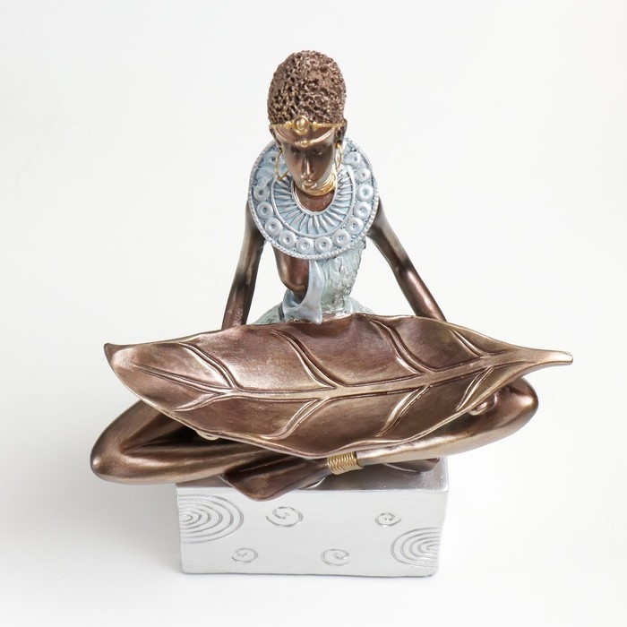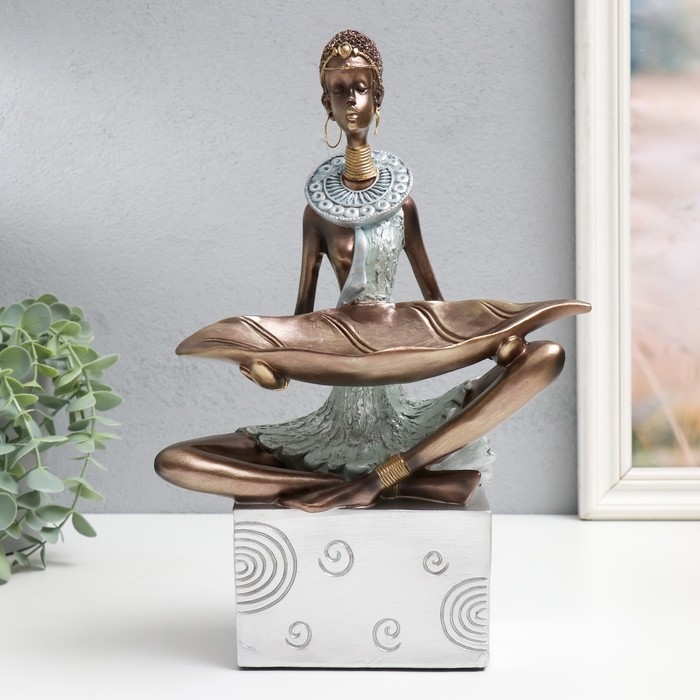 Сувенир полистоун подставка "Африканка" серебро круги 20х12х30 см