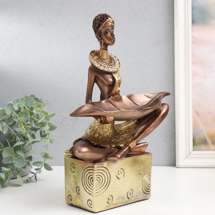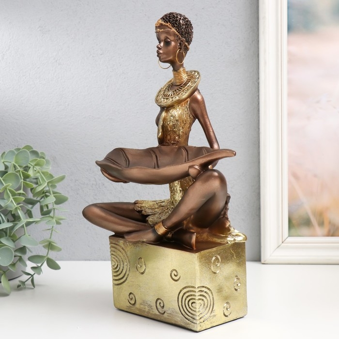 Сувенир полистоун подставка "Африканка" золото узор - круги 20х12х30 см