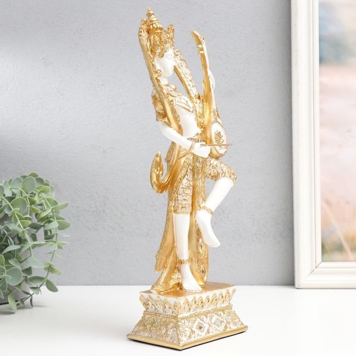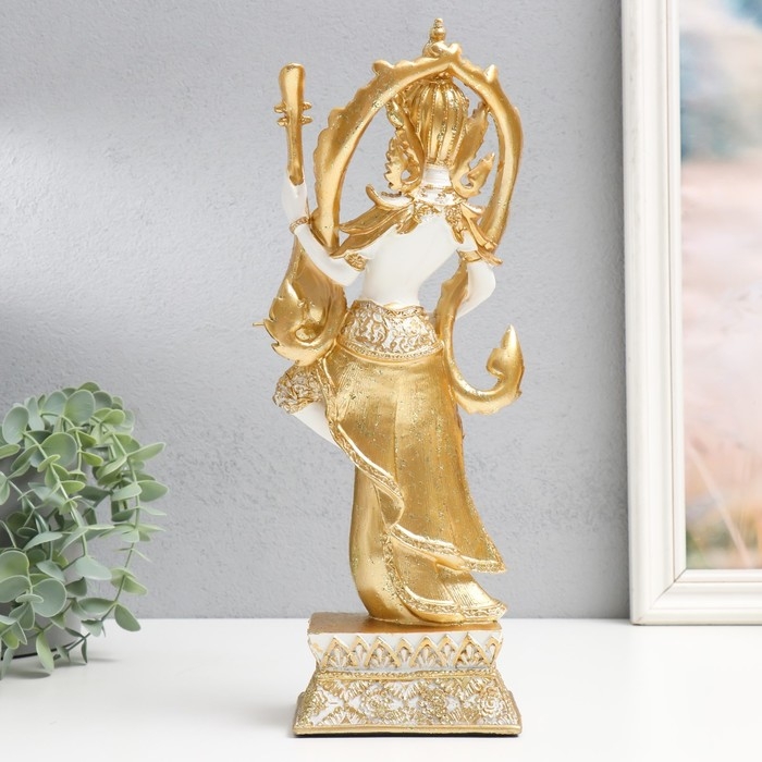 Сувенир полистоун "Танцующее божество с музыкальным инструментом" бело-золотой 13х9х34 см