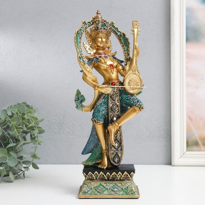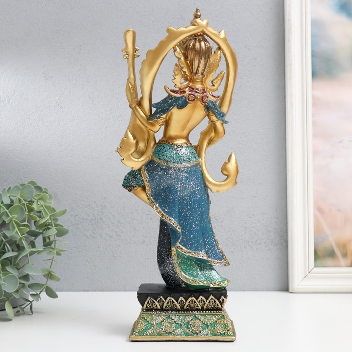 Сувенир полистоун "Танцующее божество с музыкальным инструментом" сине-золотой 13х9х34 см