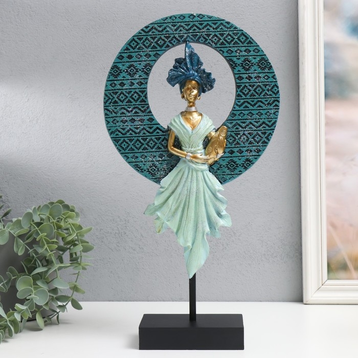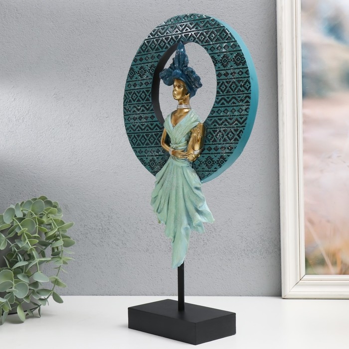 Сувенир полистоун "Девушка в африканском головном уборе" сине-голубой 21х7,5х38,5 см