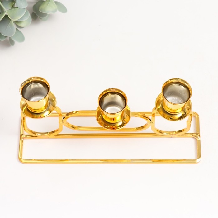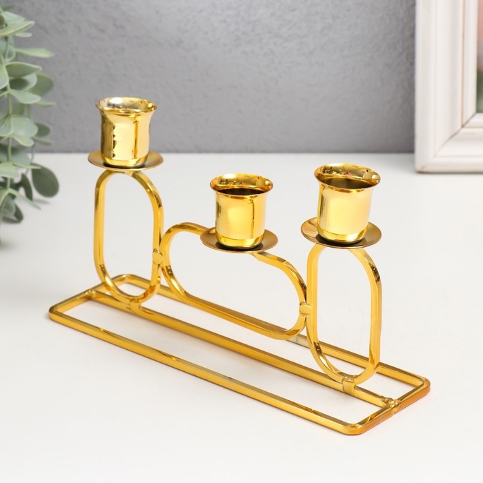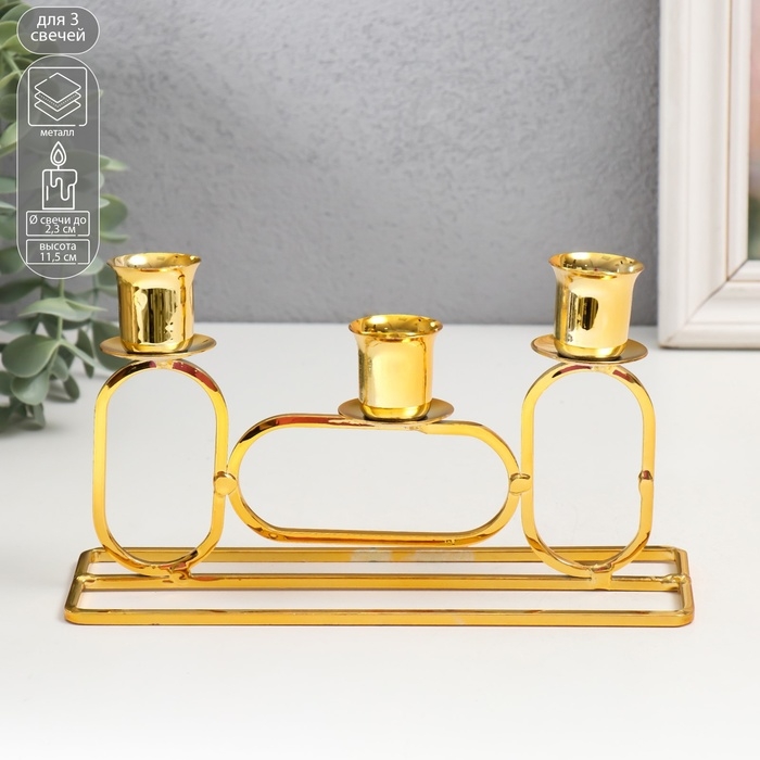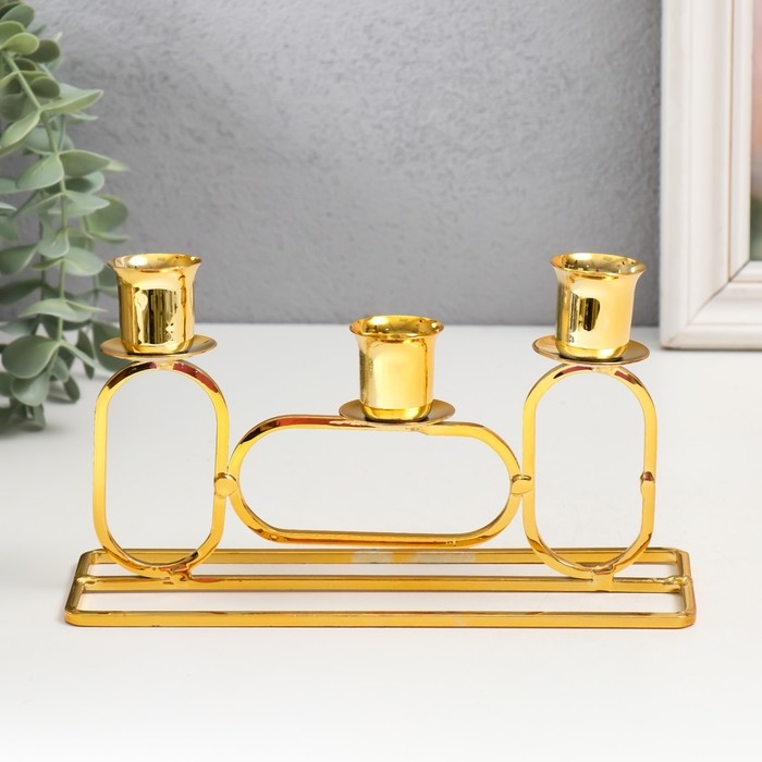 Подсвечник металл на 3 свечи "Овалы" d=2,3 см золото 5,8х20х11,5 см