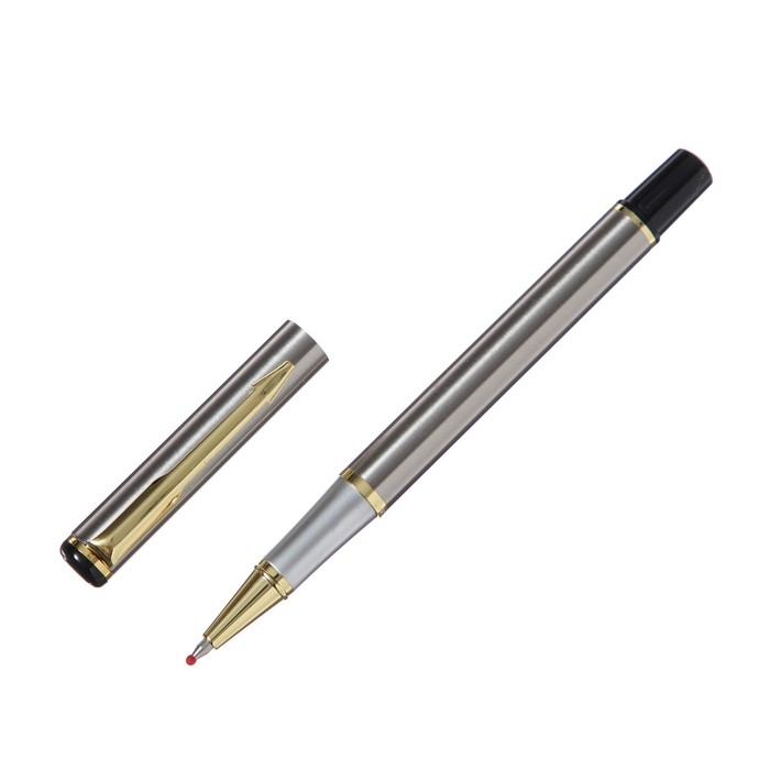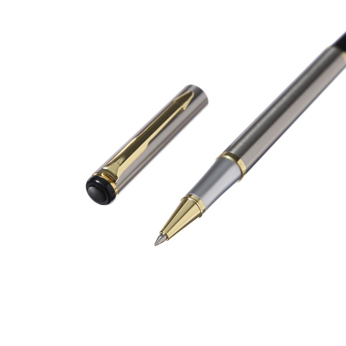 Ручка подарочная роллер в кожзам футляре, корпус серебро,золото
