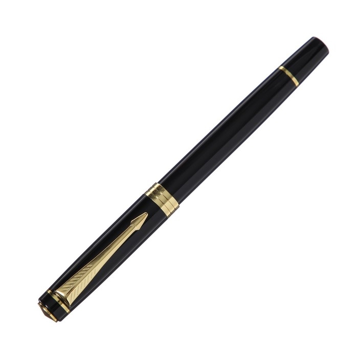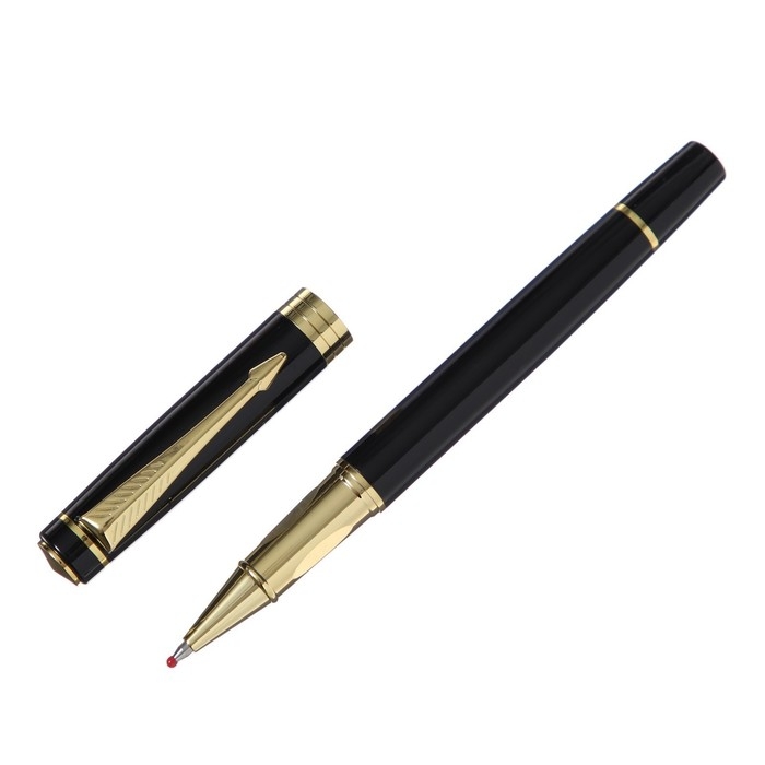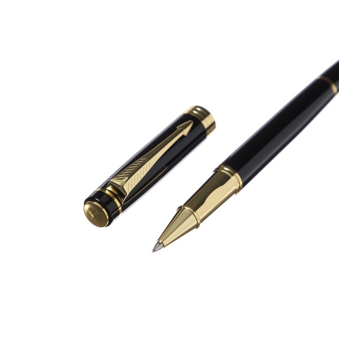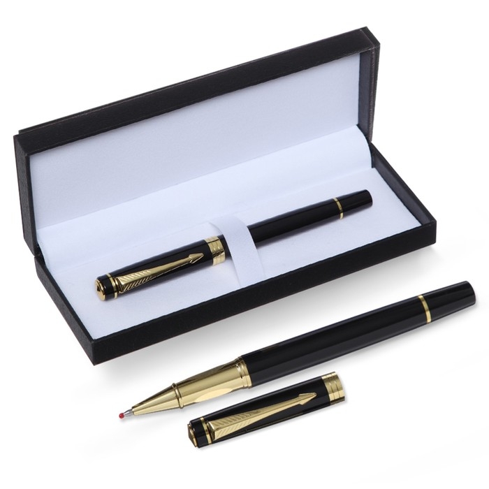 Ручка подарочная роллер, в кожзам футляре, корпус черный, золото