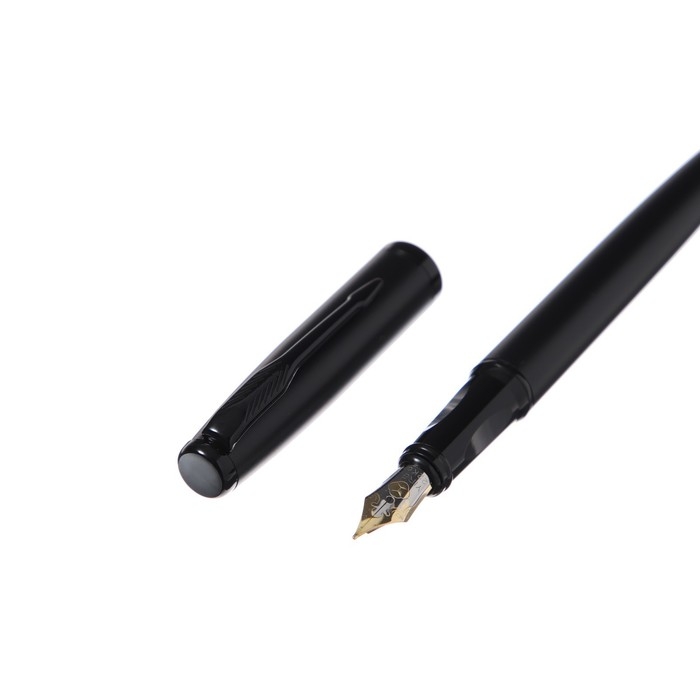 Ручка подарочная перьевая в кожзам футляре, корпус матовый черный