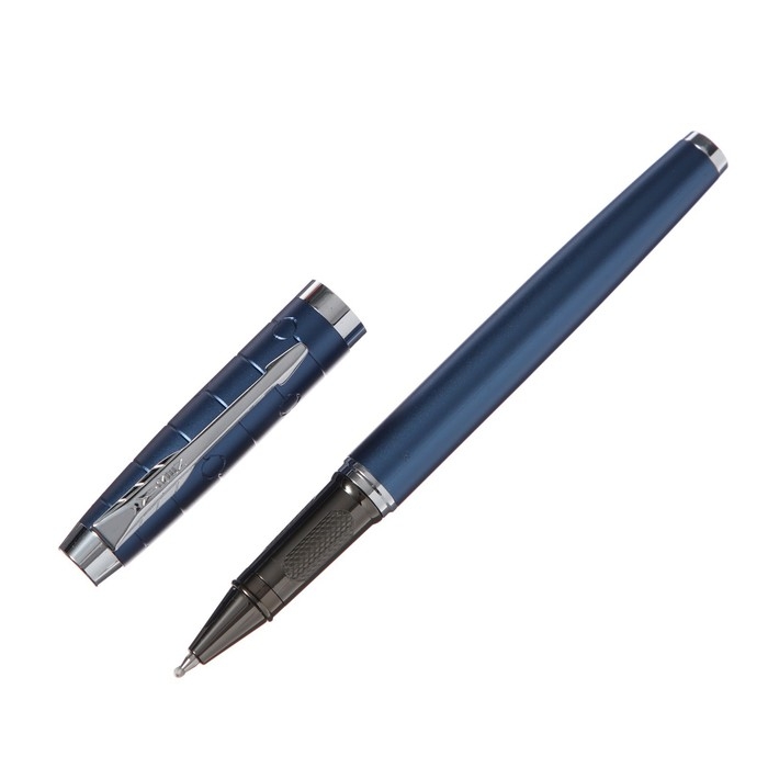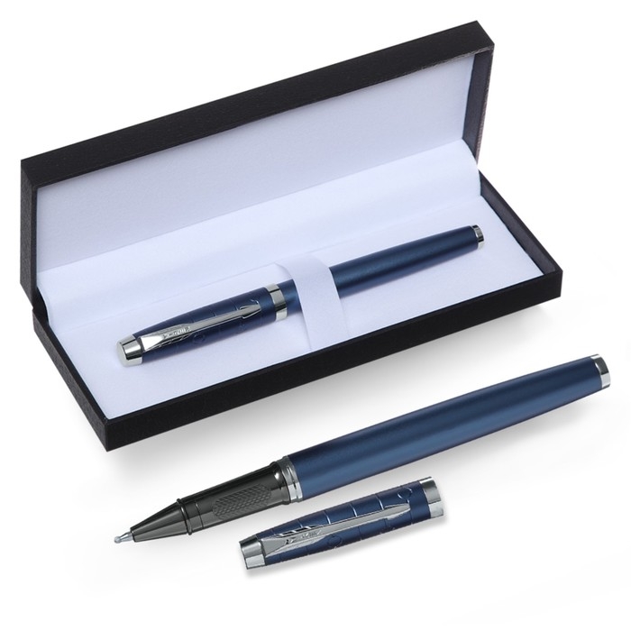 Ручка подарочная роллер, в кожзам футляре, корпус синий, серебро