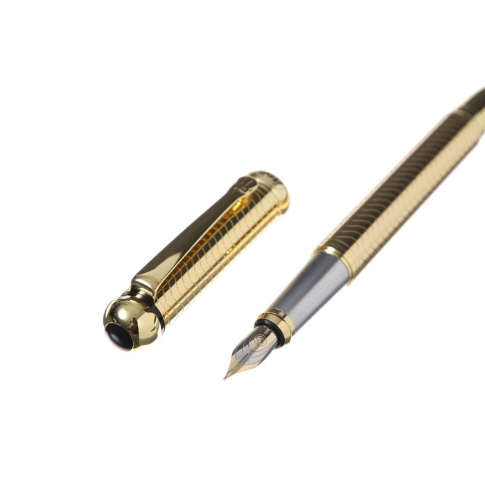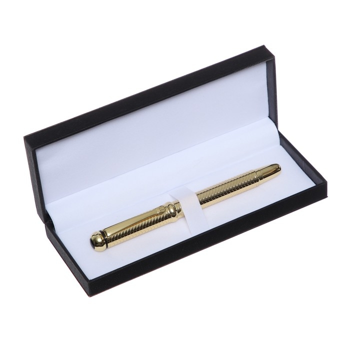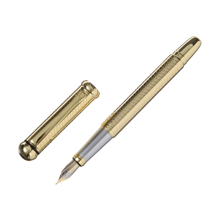 Ручка подарочная перьевая в кожзам футляре, корпус золото, серебро