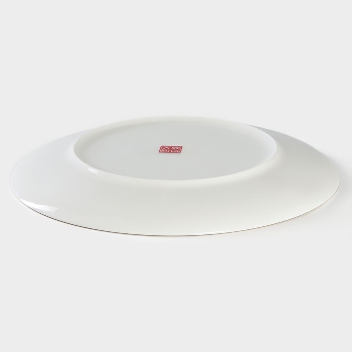Тарелка фарфоровая обеденная «Золотая линия», d=27 см, цвет белый