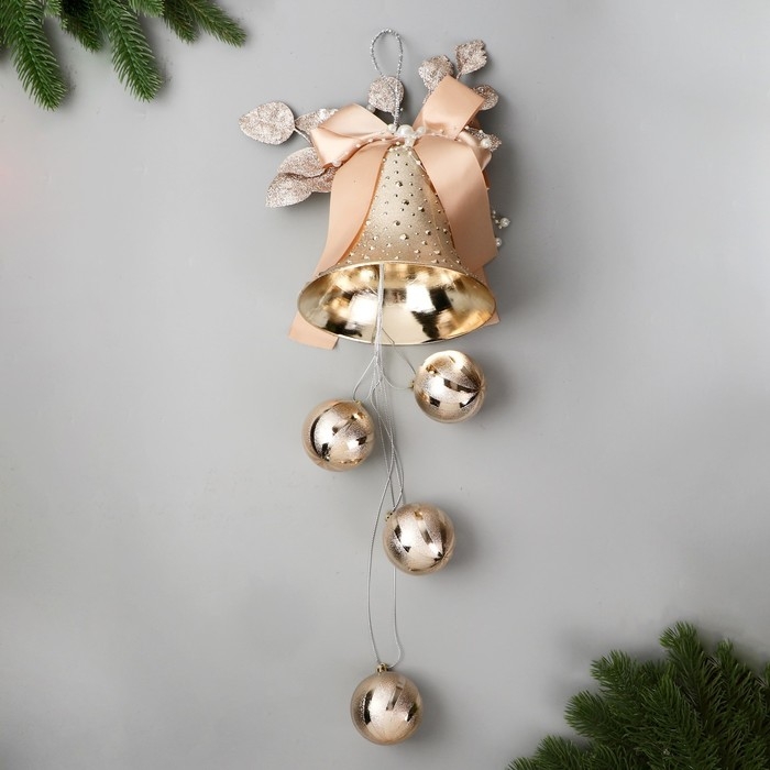 Украшение новогоднее "Уютная сказка" колокольчик шары в полоску, 12х54 см, золото