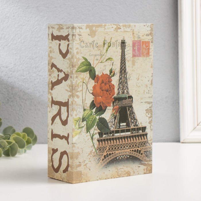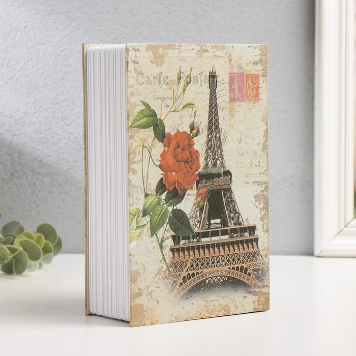 Шкатулка книга пластик, металл "Эйфелева башня и красный пион" 5,5х12х18 см